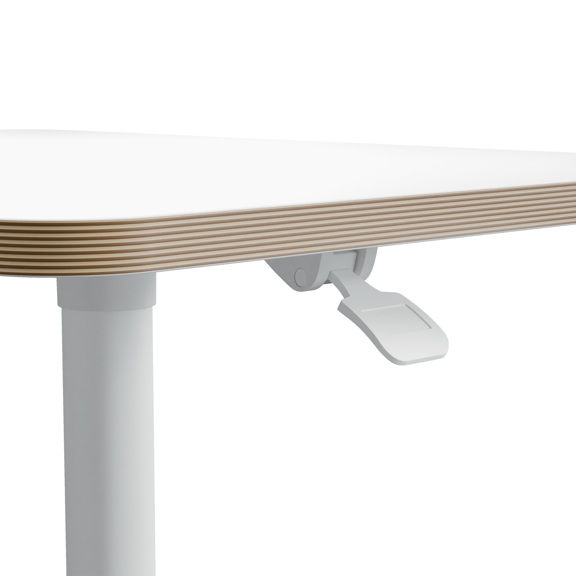 La scrivania E' progettata per un uso flessibile e come spazio di lavoro temporaneo, perfetto per l'home office, le aree di hot desking o le sale riunioni. Regolazione pneumatica assistita dell'altezza da 75 a 114 cm, facile da usare, per adattarsi a tutte le taglie e a tutte le esigenze.4 ruote bloccabili a 360 adatte a tutti i tipi di pavimento (piastrelle, laminato, legno, moquette