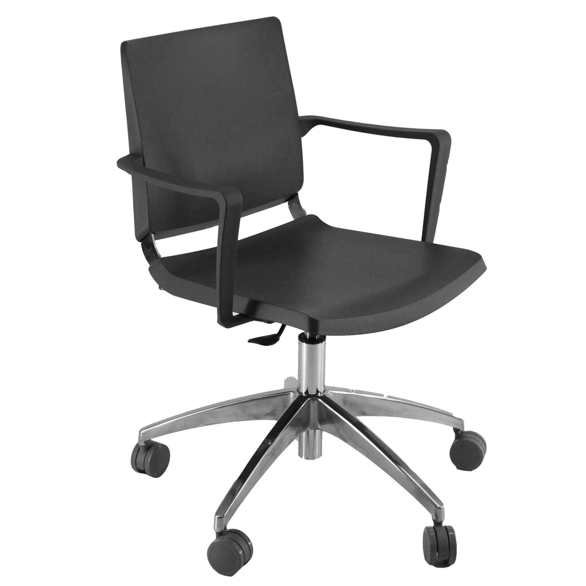 POLTRONCINA GIREVOLE CON BRACCIOLI INCLUSI - ELEVAZIONE A GAS- BASE ALLUMINO LUCIDO - 100% POLIPROPILENE. ALT. TOT: 77-91CM PROF.TOT: 62CM ALT.SCHIENALE: 39CM LARGH.SCHIENALE: 39CM LARGH. SEDILE: 45CM PROF.SEDILE: 45CM ALT.SEDILE: 44-67CM.