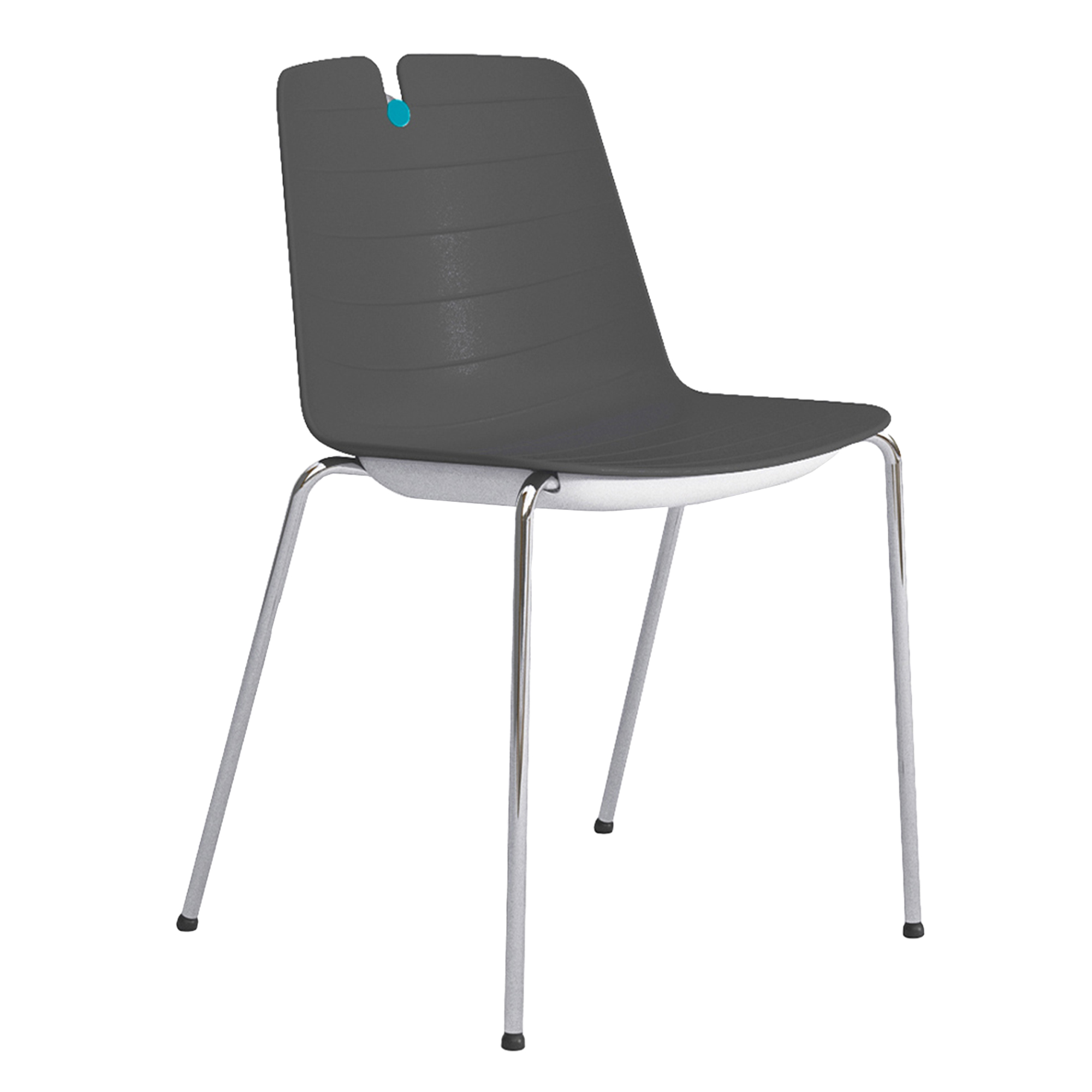 SEDUTA VISITATORE 100% POLIPROPILENE CON 4 GAMBE STRUTTURA CROMATA - BOTTONE BLU - ALTAMENTE IMPILABILE - SENZA BRACCIOLI. ALT. TOT: 80CM PROF.TOT: 52CM ALT.SCHIENALE: 39CM LARGH.SCHIENALE: 45CM LARGH. SEDILE: 45CM PROF.SEDILE: 38CM ALT.SEDILE: 45CM.