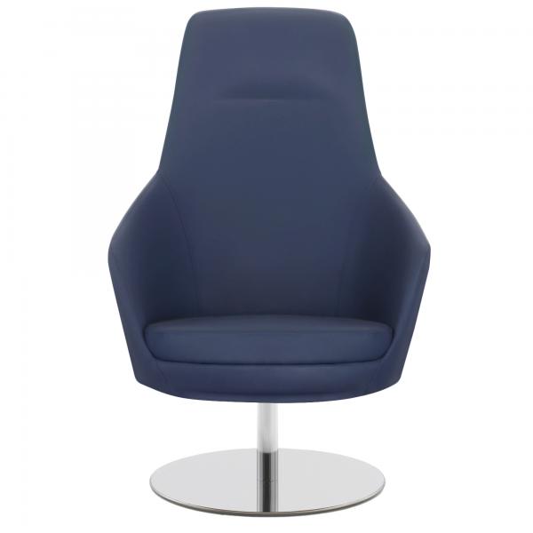 POLTRONCINA SU BASAMENTO IN METALLO CROMATO GIREVOLE. RIVESTIMENTO SEDUTA IN TESSUTO ''PLUS - ECO LEATHER'' IDROREPELLENTE, FACILE DA PULIRE, SENZA FLATATI E FLAME RETARDANT. ALT.TOT.: 111CM PROF.TOT.: 80CM LARG.TOT.: 75CM.