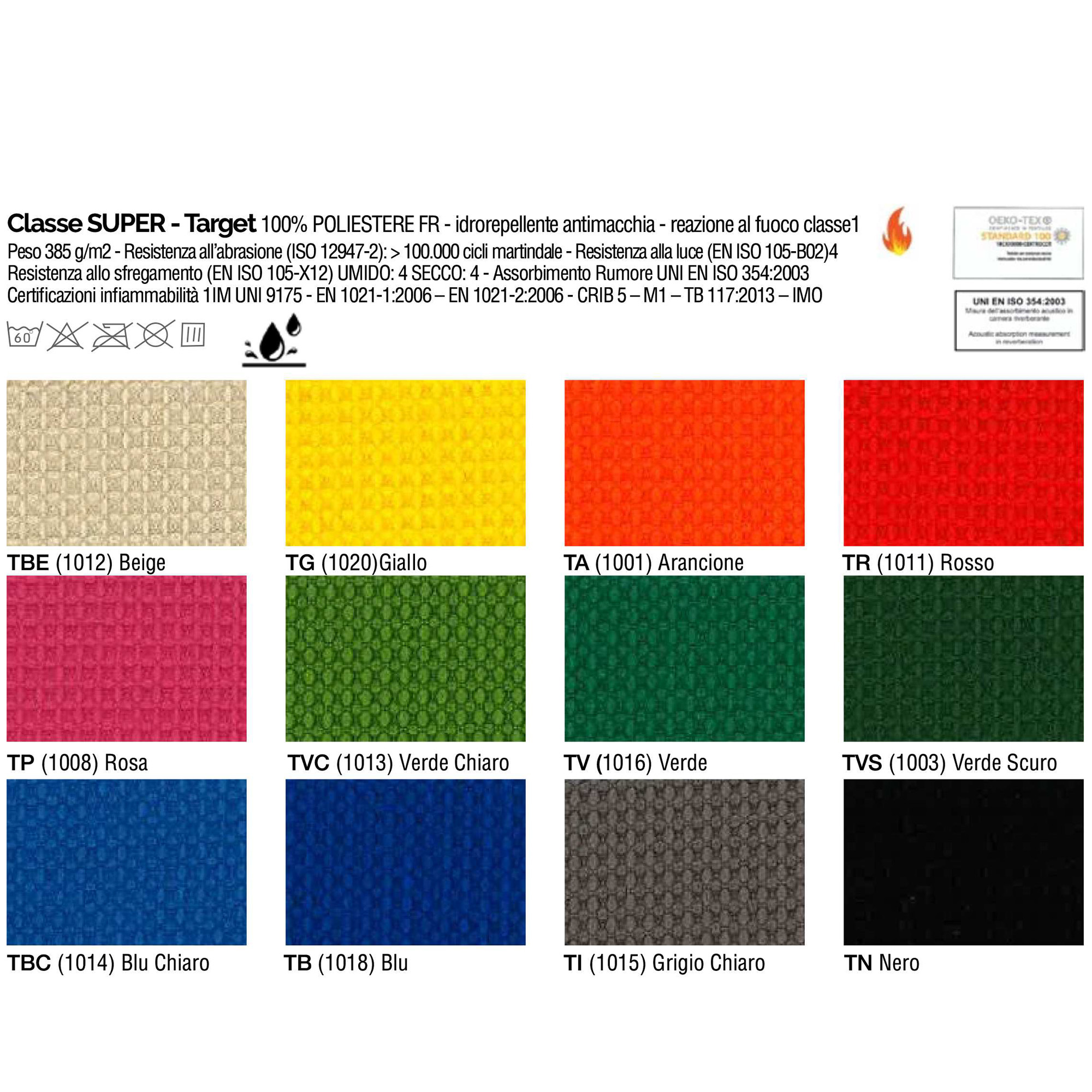 SEDIA GIREVOLE SU RUOTE CON SEDILE IN RETE PORTANTE E SCHIENALE IN RETE NERA, ELEVAZIONE A GAS. SUPPORTO LOMBARE REGOLABILE, MECCANISMO SYNCRO TRA SEDILE E SCHIENALE, A CONTATTO PERMANENTE. RIVESTIMENTO SEDUTA IN TESSUTO ''SUPER-TARGET'' 100% POLIESTERE, IDROREPELLENTE E ANTIMACCHIA, REAZIONE AL FUOCO CLASSE 1. COMPLETA DI BRACCIOLI REGOLABILI. ALT.TOT: 102-113CM PROF.TOT: 68CM ALT.SCHIENALE: 60CM LARGH.SCHIENALE:48CM LARGH.SEDILE: 48CM PROF.SEDILE: 46CM ALT.SEDILE: 42-54CM.