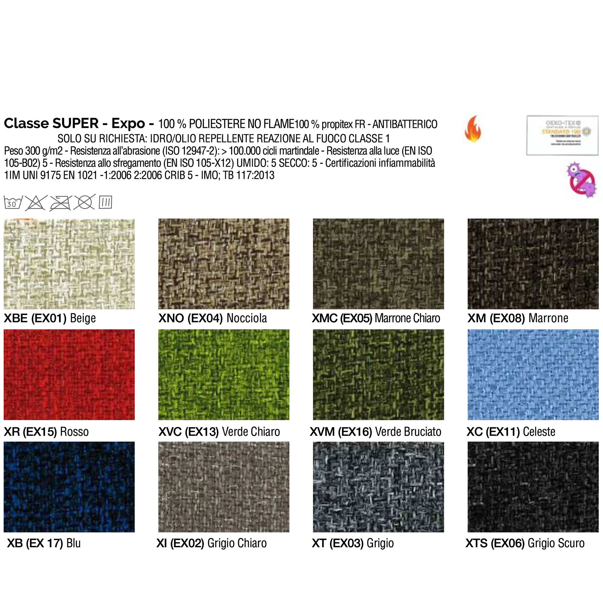 SEDUTA OPERATIVA GIREVOLE CON ELEVAZIONE A GAS - MECCANISMO SYNCHRO CON 4 BLOCCHI ANTI SHOCK - MECCANISMO A CONTATTO PERMANENTE CON TRASLATORE - SCHIENALE REGOLABILE UP-DOWN. RIVESTIMENTO SEDUTA IN TESSUTO ''SUPER - EXPO'' 100% POLIESTERE E REAZIONE AL FUOCO CLASSE 1. COMPLETA DI BRACCIOLI REGOLABILI E POGGIATESTA. ALT.TOT.: 113-124CM PROF.TOT.: 68CM ALT.SCHIENALE: 62CM LARG.SCHIENALE: 45CM LARG.SEDUTA: 51CM PROF.SEDILE: 46CM ALT. SEDILE: 42-54CM.