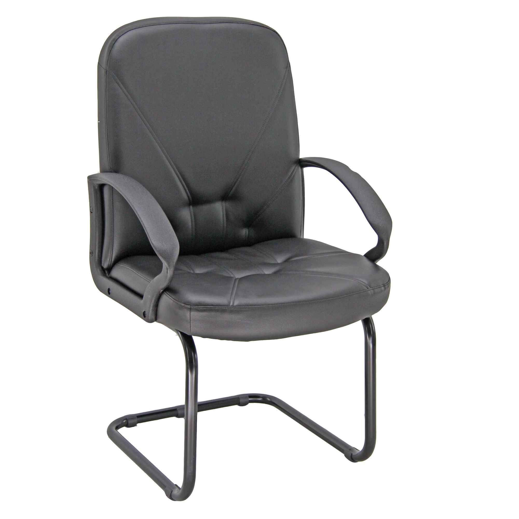 POLTRONA IN SIMILPELLE NERA CON SCHIENALE MEDIO. BRACCIOLI IN NYLON E SLITTA IN ACCIAIO TUBOLARE.