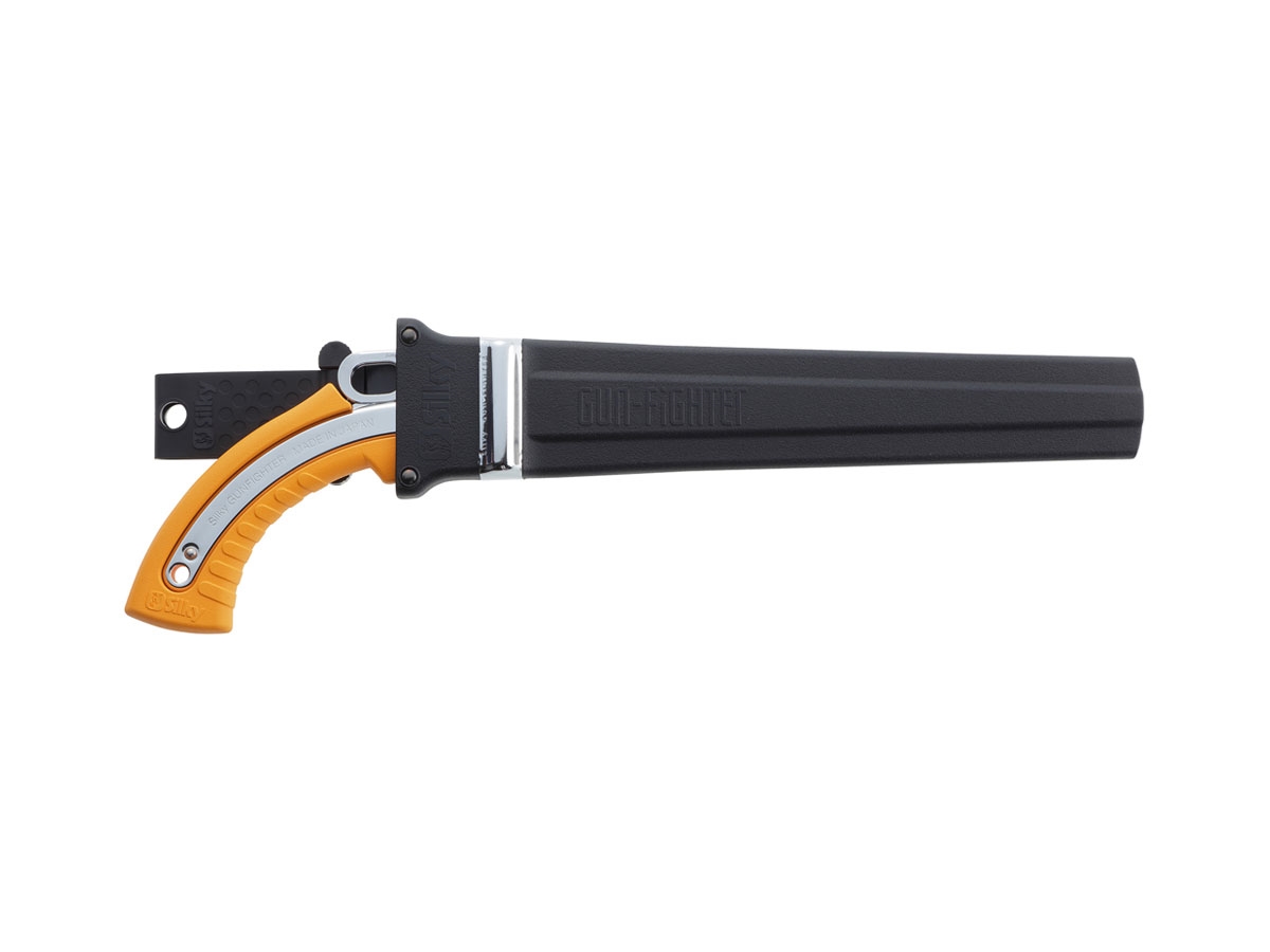 Ha ha una grande impugnatura in gomma che assorbe le vibrazioni ed offre una buona presa. La lama può essere facilmente sostituita in poco tempo. La guaina è stata progettata in modo tale che la sega non fuoriesca anche quando ci si trovi siete in posizioni difficili, ma permette che la sega sia facilmente estraibile con una sola mano premendo il pollice sul pulsante ai lati. La Gunfighter è disponibile in tre lunghezze di lama: 270 - 300 - 330 mm.