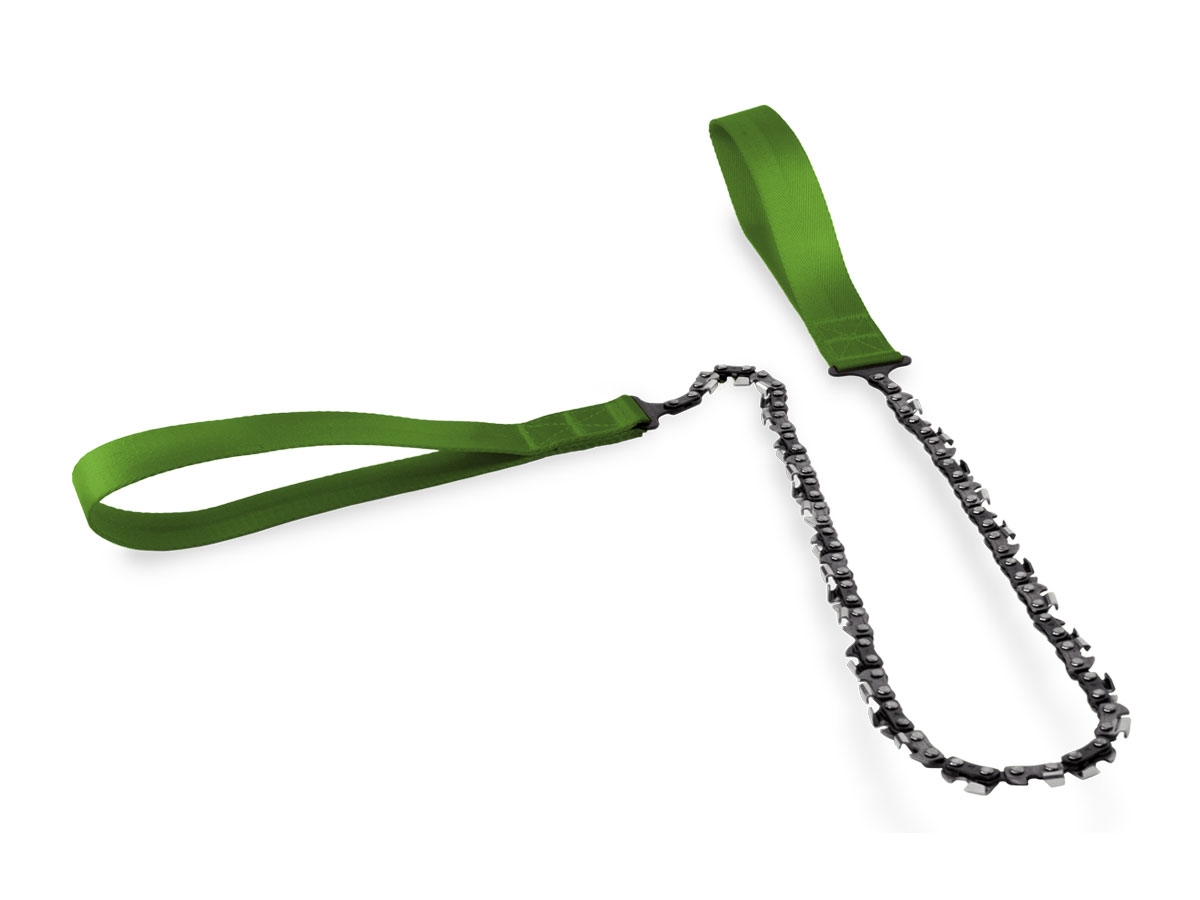 La catena è lunga 65 cm ed è realizzata in acciaio ad alto tenore di carbonio trattato termicamente con 33 denti bidirezionali che garantiscono le massime prestazioni durante l'utilizzo. I manici sono realizzati in nylon resistente e sono extra large per fornire una presa sicura anche quando sono bagnati. La catena è stata testata in un laboratorio svedese e può resistere a una forza 20 volte più forte di quella che un essere umano può ottenere con un uso normale.