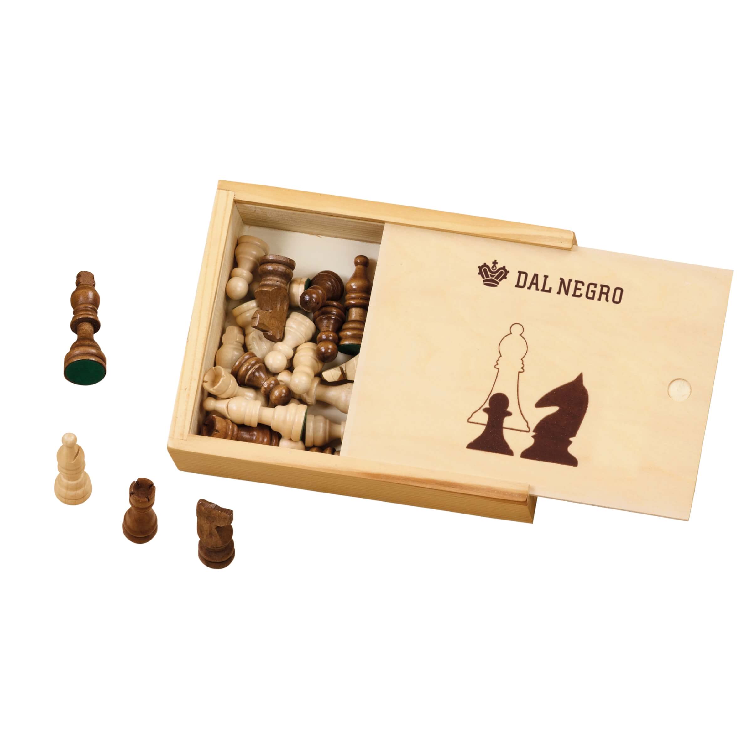 Un classico intramontabile per gli amanti degli scacchi. Questo set di pezzi in legno di alta qualità, contenuto in un’elegante scatola di legno, è perfetto per partite di scacchi su scacchiere di dimensioni 31 x 31 cm, portando raffinatezza e stile al tuo tavolo da gioco. • Pezzi in Legno: Realizzati in legno naturale, i 32 pezzi di questo set (16 bianchi e 16 neri) offrono una presa comoda e un’estetica classica, rendendo ogni partita un’esperienza piacevole e autentica. L’altezza del Re è di 65 mm, ideale per una buona visibilità e maneggevolezza. • Confezione in Legno: La scatola in legno con coperchio scorrevole assicura una protezione perfetta per i pezzi, consentendo di conservarli in modo ordinato e di trasportarli facilmente. Questo contenitore è curato nei dettagli, con un design raffinato che esprime la qualità e l’eleganza del marchio Dal Negro. • Dimensioni Compatibili: Ideale per scacchiere di 31 x 31 cm, questo set è pensato per garantire una perfetta proporzione e un equilibrio visivo che arricchisce l’esperienza di gioco. Qualità e Tradizione Dal Negro: Con la garanzia di un marchio storico come Dal Negro, questo set di scacchi in legno rappresenta un'aggiunta preziosa per gli appassionati e i collezionisti di giochi da tavolo classici. Arricchisci le tue partite con il Set Scacchi Dal Negro e goditi l’eleganza del legno, che rende ogni mossa speciale e ogni partita un momento di puro piacere.