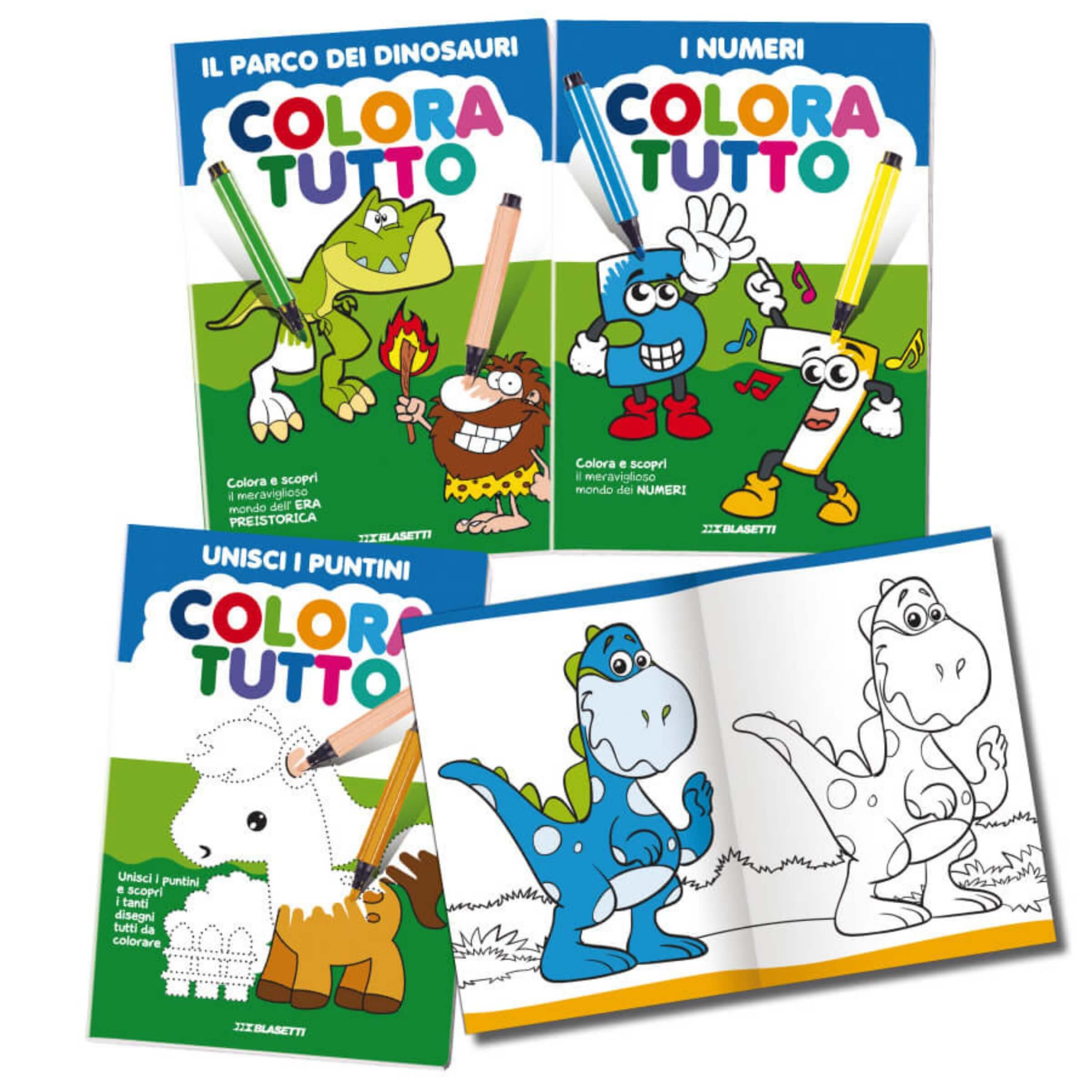 Gli album da colorare Blasetti Linea 2 sono studiati per accompagnare i bambini in un percorso creativo che unisce fantasia e apprendimento, offrendo pagine ricche di stimoli visivi e didattici. Ogni album propone illustrazioni chiare e coinvolgenti, pensate per stimolare la coordinazione, la concentrazione e la capacità di osservazione. Grazie alla carta di alta qualità da 120 grammi, ogni pagina resiste a diverse tecniche di coloritura, dai pastelli ai pennarelli, senza rischiare che i colori trapassino o che la superficie si rovini. Questi album rappresentano un’attività perfetta sia in casa che a scuola, diventando un alleato prezioso per sviluppare manualità e fantasia in modo divertente e sicuro.• Carta resistente da 120 gr: La grammatura spessa e robusta assicura stabilità durante l’uso, ideale per bambini che amano colorare con intensità utilizzando pennarelli o matite.• 24 facciate da scoprire: Ogni album contiene 24 pagine tutte diverse, con illustrazioni accattivanti che offrono ampio spazio alla creatività e al gioco educativo.• Temi assortiti Linea 2: La collezione propone tre tipologie di album assortite in pari quantità. Il tema Dinosauri introduce i bambini al mondo preistorico con creature simpatiche e scenari ricchi di dettagli; il tema Numeri aiuta a familiarizzare con i primi concetti matematici attraverso immagini allegre e intuitive; il tema Puntini da unire stimola logica e concentrazione permettendo di completare le figure collegando i numeri e colorando successivamente il disegno.• Attività educative integrate: Oltre a divertire, gli album favoriscono lo sviluppo della memoria visiva, la capacità di riconoscere forme e numeri e l’acquisizione delle prime abilità cognitive di base.• Formato versatile: Le dimensioni pratiche li rendono facili da trasportare e ideali per accompagnare i bambini nei momenti di svago, a scuola, in viaggio o durante attività ricreative in famiglia.• Collezione completa: Ogni album può essere raccolto insieme agli altri titoli della linea, dando vita a una collezione ricca di mondi da esplorare, tutti diversi ma uniti dallo stesso obiettivo: imparare divertendosi.Gli album da colorare Blasetti Linea 2 trasformano l’esperienza del gioco in un momento educativo e creativo che rimane impresso nella memoria dei bambini. Con le loro grafiche vivaci e i contenuti attentamente progettati, rappresentano un regalo ideale e uno strumento prezioso per accompagnare la crescita e stimolare nuove curiosità ogni giorno.