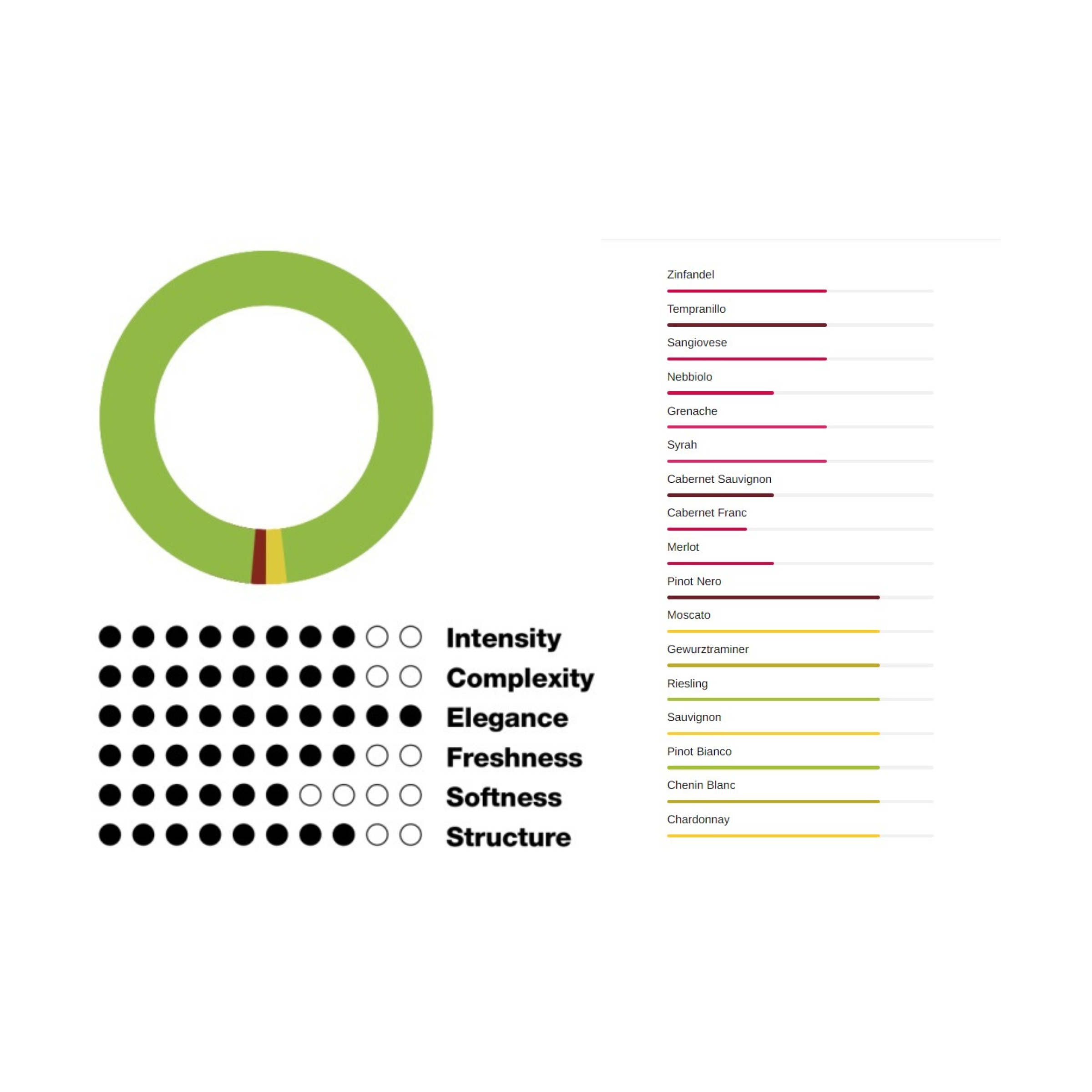 • Colore: Trasparente, per apprezzare al meglio il colore e la perlage del vino.
