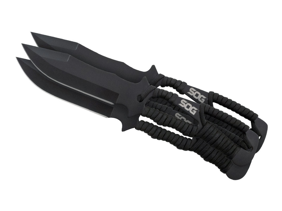 I coltelli da lancio SOG non sono solo divertenti da veder fendere l'aria, ma sono anche pratici. Protetti dal rivestimento nero rigido di SOG, sono estremamente resistenti ai graffi. Il loro equilibrio, l'aerodinamica e le proporzioni li rendono ottimi coltelli da lancio. Per gli stessi motivi, sono anche ottimi coltelli da outdoor. I manici sono avvolti con paracord o si usano senza di esso. Set di tre (3). Include un fodero in nylon che trasporta in sicurezza tutti e tre.