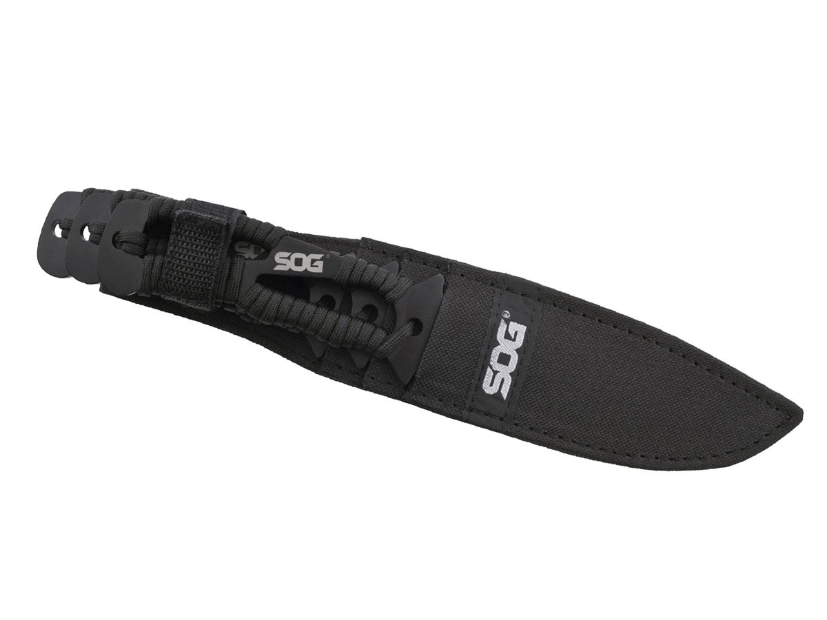 I coltelli da lancio SOG non sono solo divertenti da veder fendere l'aria, ma sono anche pratici. Protetti dal rivestimento nero rigido di SOG, sono estremamente resistenti ai graffi. Il loro equilibrio, l'aerodinamica e le proporzioni li rendono ottimi coltelli da lancio. Per gli stessi motivi, sono anche ottimi coltelli da outdoor. I manici sono avvolti con paracord o si usano senza di esso. Set di tre (3). Include un fodero in nylon che trasporta in sicurezza tutti e tre.