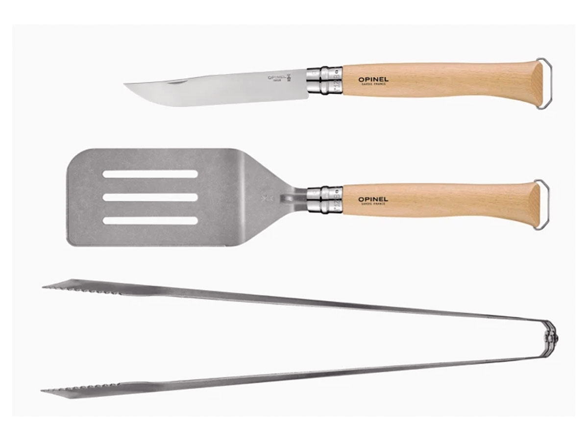 ll set barbecue è il compagno senza tempo dei momenti conviviali e golosi. Utile ed efficace, è composto da tre utensili fabbricati in Francia con materiali locali di qualità. Il coltello pieghevole N°12 B con una lama in acciaio inox da 16 cm, con un manico in legno di faggio robusto e con un apribottiglie all'estremità del manico che permette anche di appendere il coltello. La Spatola + in acciaio inox con finitura stonewashed che si inserisce sul manico del coltello n. 12 B e si blocca con la ghiera. La sua ampia superficie (8,5 cm x 20 cm) consente di raccogliere rapidamente il cibo ed è dotata di un angolo stretto e di uno smusso su entrambi i lati per separare o raschiare. La Pinza XL in acciaio inox con finitura stonewashed è lunga 40 cm per poterla maneggiare in modo semplice e sicuro. La testa asimmetrica consente di prendere pezzi di grandi dimensioni con l'ampio angolo seghettato e quelli più piccoli con l'angolo stretto. Ha anche una fessura solleva griglia sul tallone.