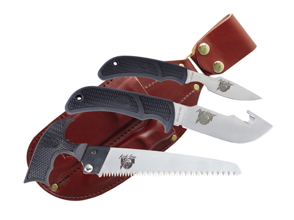 Il set include tre strumenti essenziali per un cacciatore: la sega Kodi-Saw, lo skinner Kodi-Hunter ed il Kodi-Caper.