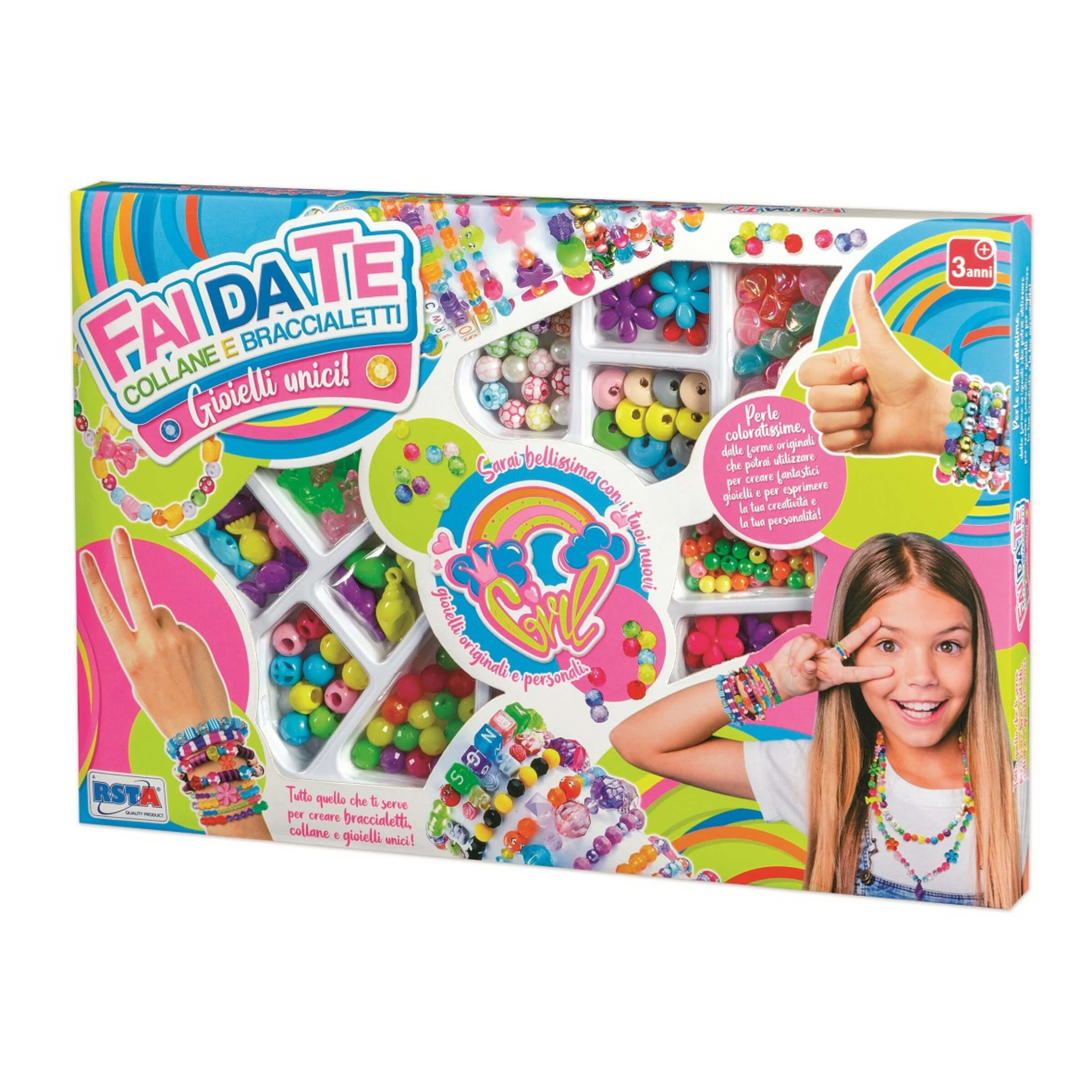 La fantasia prende vita attraverso il colore, e non c’è niente di più coinvolgente per una bambina che creare i propri gioielli con le proprie mani. Questo set fai da te per collane e braccialetti è pensato per offrire un'esperienza creativa completa, dove ogni perlina è un piccolo pezzo di immaginazione pronta a trasformarsi in qualcosa di unico. Con una vasta gamma di forme, colori e texture, il gioco diventa un’occasione per scoprire l’arte della composizione, stimolare la manualità fine e dare spazio all’espressione personale attraverso la creazione.