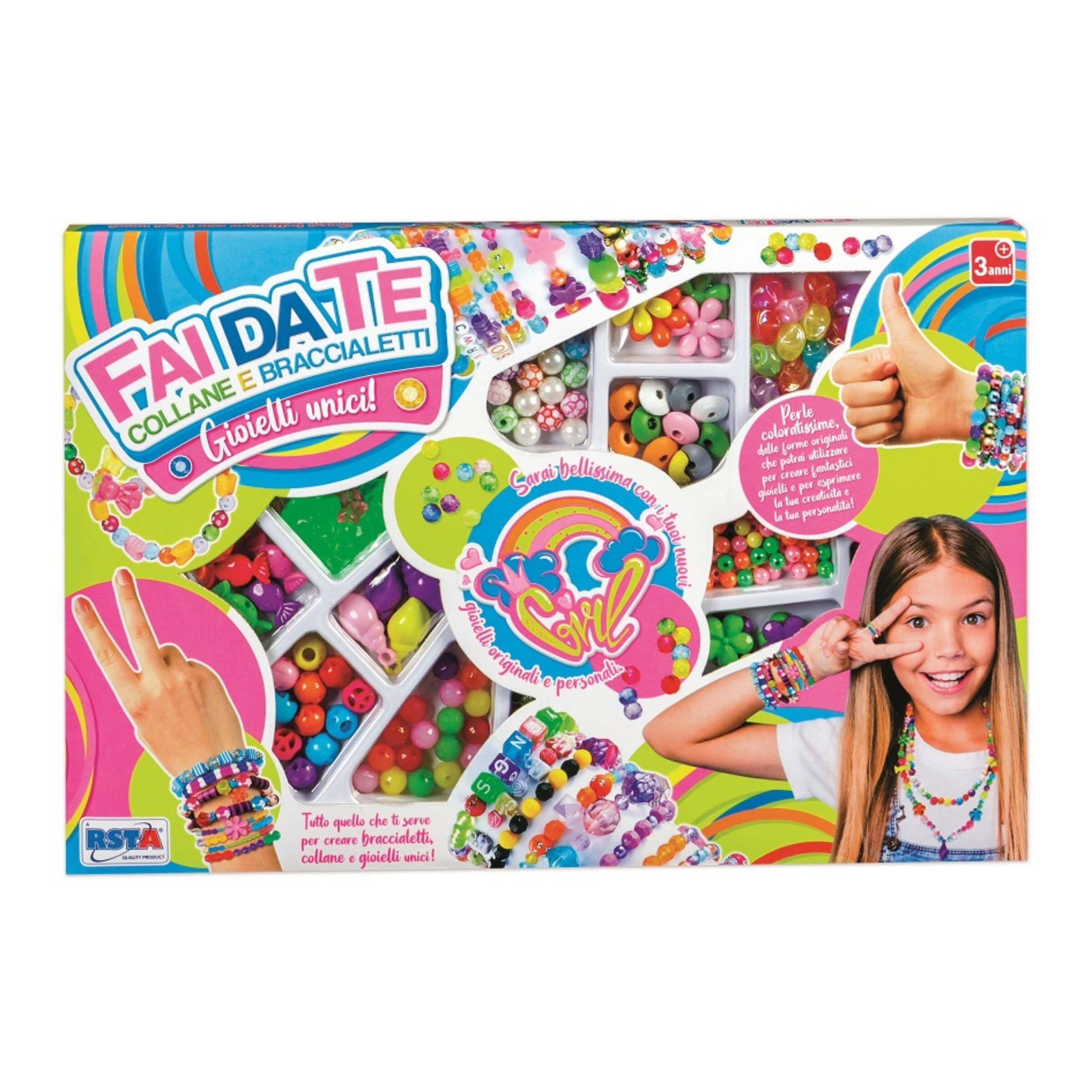 • Contenuto confezione: Il set include una ricca selezione di perline colorate in plastica, suddivise per forma e colore, accompagnate da elastici e cordini per comporre facilmente collane, braccialetti e gioielli originali.
