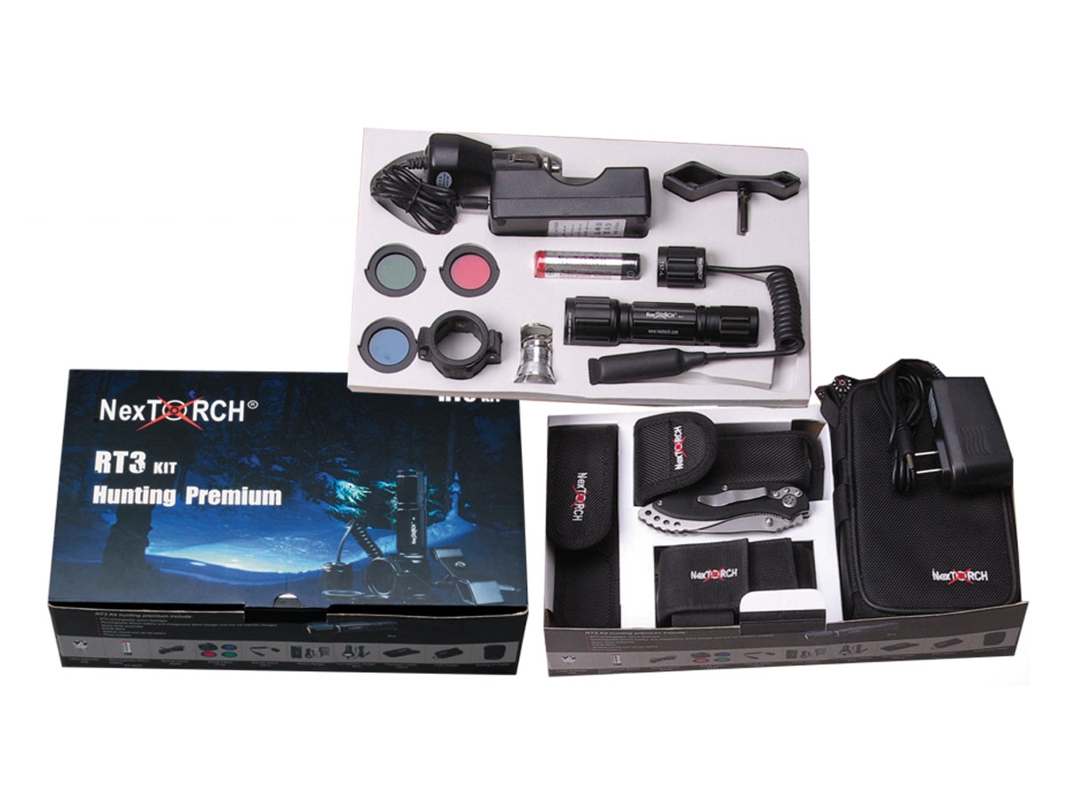 -  1 x  Torcia NEXTORCH RT3- 1 x  Bulbo XENON- 1 x  Batteria NT18650 ricaricabile- 1 x  Remote Control Switch- 1 x Adattatore  - 1 x  Caricabatterie da auto- 1 x  Caricabatterie da presa diretta- 1 x  Set Adattatore + 3 filtri- 3 x  Foderi