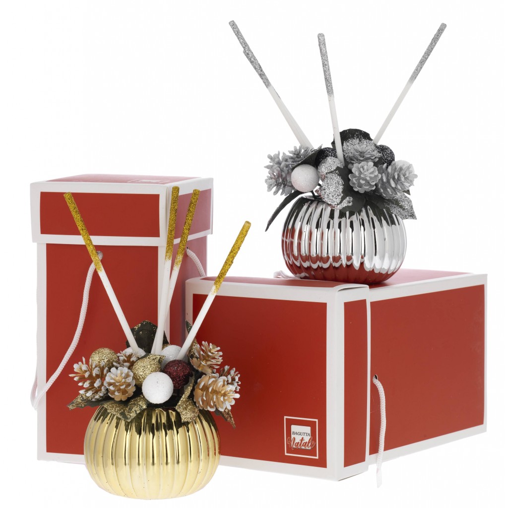 SFERA D.8,5 cm FESONI CON DECORAZIONE NATALIZIA ARGENTO + STICK - N 8492-01