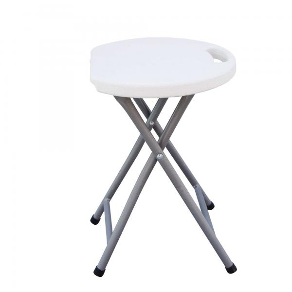 SGABELLO HORECA PIEGHEVOLE DI COLORE BIANCO. STRUTTURA IN ACCIAIO VERNICIATO CON VERNICI EPOSSIDICHE COLOR GRIGIO E TOP IN HDPE DI COLORE BIANCO PIEGHEVOLE. DIMENSIONI: H44 X P30 X L30CM - 1,7KG.ARTICOLO DESTINATO AD ESCLUSIVO USO DOMESTICO. NON ADATTO AD USO PUBBLICO.