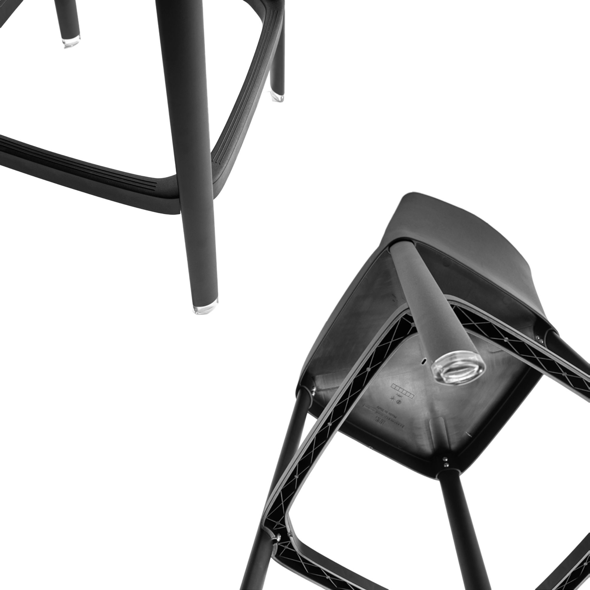 SGABELLO ALTO 100% POLIPROPILENE - STRUTTURA IN ACCIAIO TUBOLARE SEZIONE OVALE - SENZA BRACCIOLI. ALT. TOT: 95CM PROF.TOT: 43CM ALT.SCHIENALE: 22,5CM LARGH.SCHIENALE: 38CM LARGH. SEDILE: 38CM PROF.SEDILE: 37CM ALT.SEDILE: 75CM.