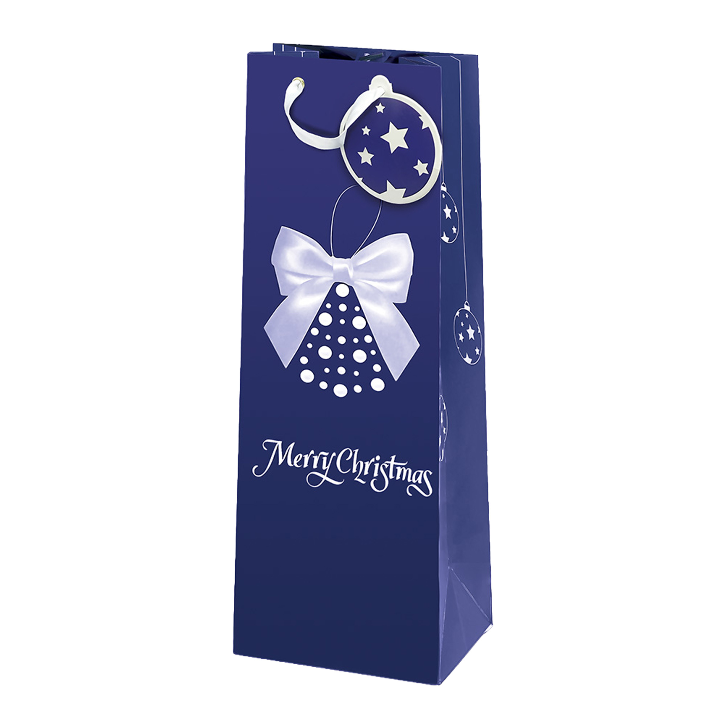 Shopper per Bottiglia Merry Christmas Blu in Carta Opaca con Biglietto Coordinato 11,4 x 36 x 11,4 cm - 81844