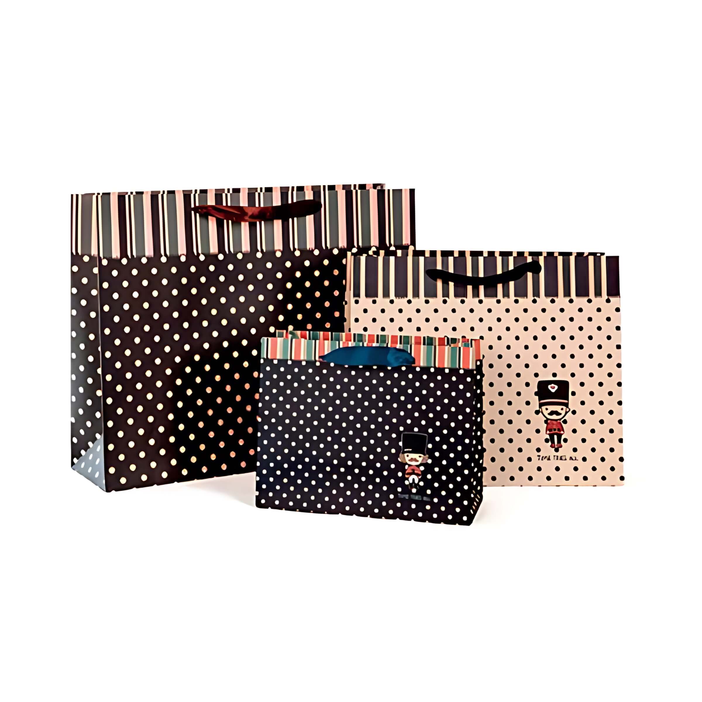 La shopper regalo 210 gr con manici in raso 42x33x12 cm è l'alleato perfetto per regalo confezioni eleganti e resistenti. Progettato per offrire una qualità superiore, è realizzato in carta spessa con finiture curate, ideale per chi desidera un packaging raffinato e di grande impatto visivo. Perfetto per negozi, boutique e confezioni regalo importanti.• Carta extra resistente da 210 gr : costruito con cartoncino di alta qualità , questo shopper garantisce un'ottima robustezza, rendendolo ideale per trasportare regali più voluminosi e pesanti senza rischi di rottura.• Manici in raso per un'eleganza superiore : I manici in raso colorato offrono una presa comoda e sicura, aggiungendo un tocco di classe alla confezione e valorizzando il contenuto.• Dimensioni ampie per confezioni di grande formato : Con misure di 42x33x12 cm , questa shopper è perfetta per confezionare regali più grandi, oggetti di pregio, articoli di moda e confezioni multiple.• Design moderno con fantasie esclusive : disponibile in tre diverse fantasie , caratterizzate da colori vivaci e motivi accattivanti, ideali per ogni tipo di evento e celebrazione.• Confezione da 12 pezzi : perfetta per chi necessita di più sacchetti coordinati, il set include 12 shopper , offrendo una soluzione pratica ed elegante per ogni occasione.La shopper regalo 210 gr con manici in raso 42x33x12 cm è la scelta ideale per chi cerca un sacchetto resistente, raffinato e dal design esclusivo. Perfetto per chi vuole rendere ogni regalo ancora più speciale con una confezione di qualità superiore.
