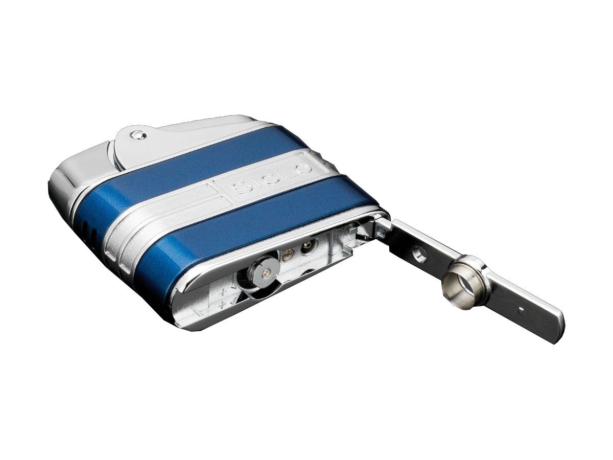Elegante ma sportivo, l'accendino Retro II Streamliner è disponibile in molteplici stili e finiture: giallo Cohiba, nero lucido, blu navy e metallizzato. Ha una finestra per il serbatoio gas, un regolatore di fiamma ed un punch. E' dotato di una fiamma angolata, a forma di fiore, che consente l'accensione di sigari ad anello spesso.