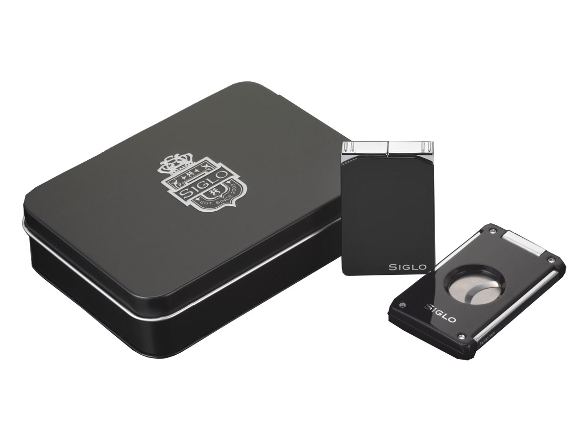 In risposta alle elevate richieste, SIGLO ha confezionato i suoi due accendini e taglierini più venduti in un set di accessori. Di grande pregio l'accendino Twin Flame, famoso per la sua doppia fiamma, jet e morbida, ed il tagliasigari Switch Blade, elegante e facile da usare. Il set è perfetto come regalo o per uso personale ed è ben confezionato in una scatola di latta nera. Quattro i colori disponibili: Rosso, Blu, Giallo e Nero.