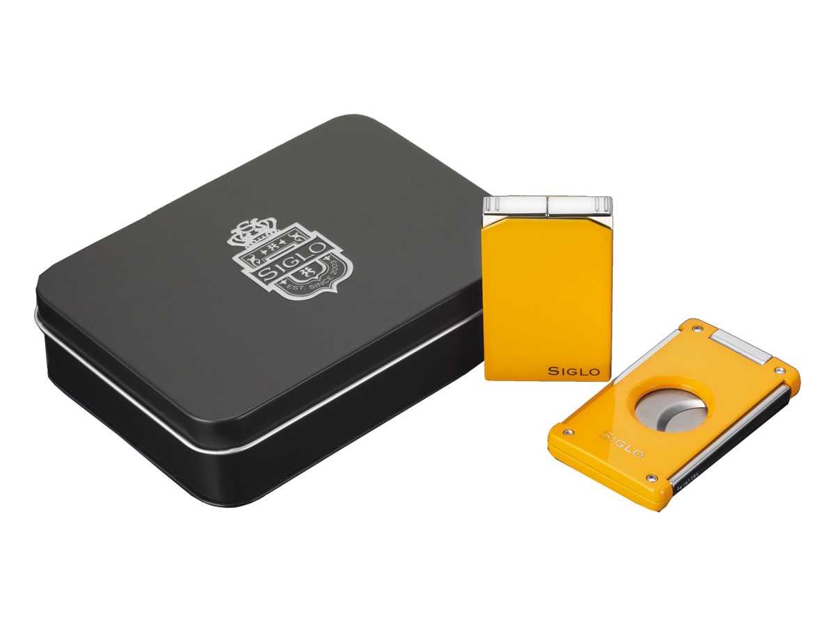 In risposta alle elevate richieste, SIGLO ha confezionato i suoi due accendini e taglierini più venduti in un set di accessori. Di grande pregio l'accendino Twin Flame, famoso per la sua doppia fiamma, jet e morbida, ed il tagliasigari Switch Blade, elegante e facile da usare. Il set è perfetto come regalo o per uso personale ed è ben confezionato in una scatola di latta nera. Quattro i colori disponibili: Rosso, Blu, Giallo e Nero.