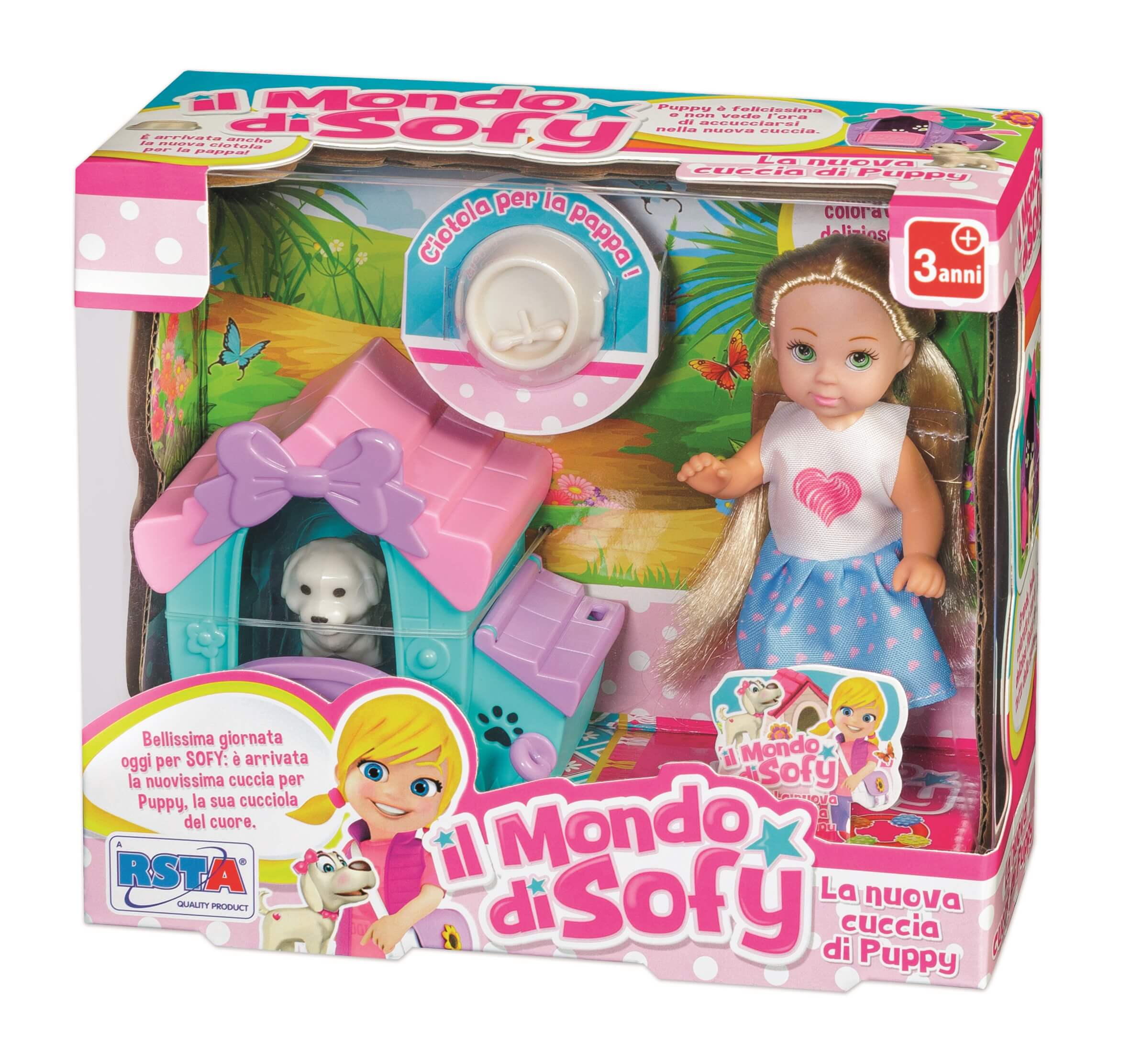 • Design Dettagliato e Colorato: La bambola Sofy e il cucciolo sono realizzati con dettagli accurati e colori vivaci. La cuccia è decorata con un grazioso fiocco, rendendo il set ancora più attraente per le bambine.