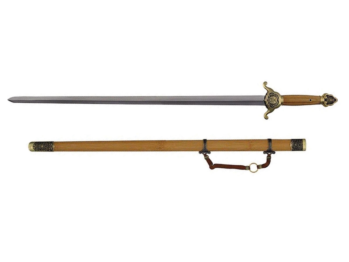 - Lama in acciaio ad alto tenore di carbonio forgiato - Decorazioni in ottone con rappresentati il fiore di loto e l'emblema del tempio Shaolin. - Fodero e manico in bambù, esemplificando lo spirito Zen . - Il famoso Tempio Shaolin in Cina è rinomato per la sua associazione con le arti marziali cinesi e con il Kung Fu Shaolin, legato ai principi del Buddismo Zen