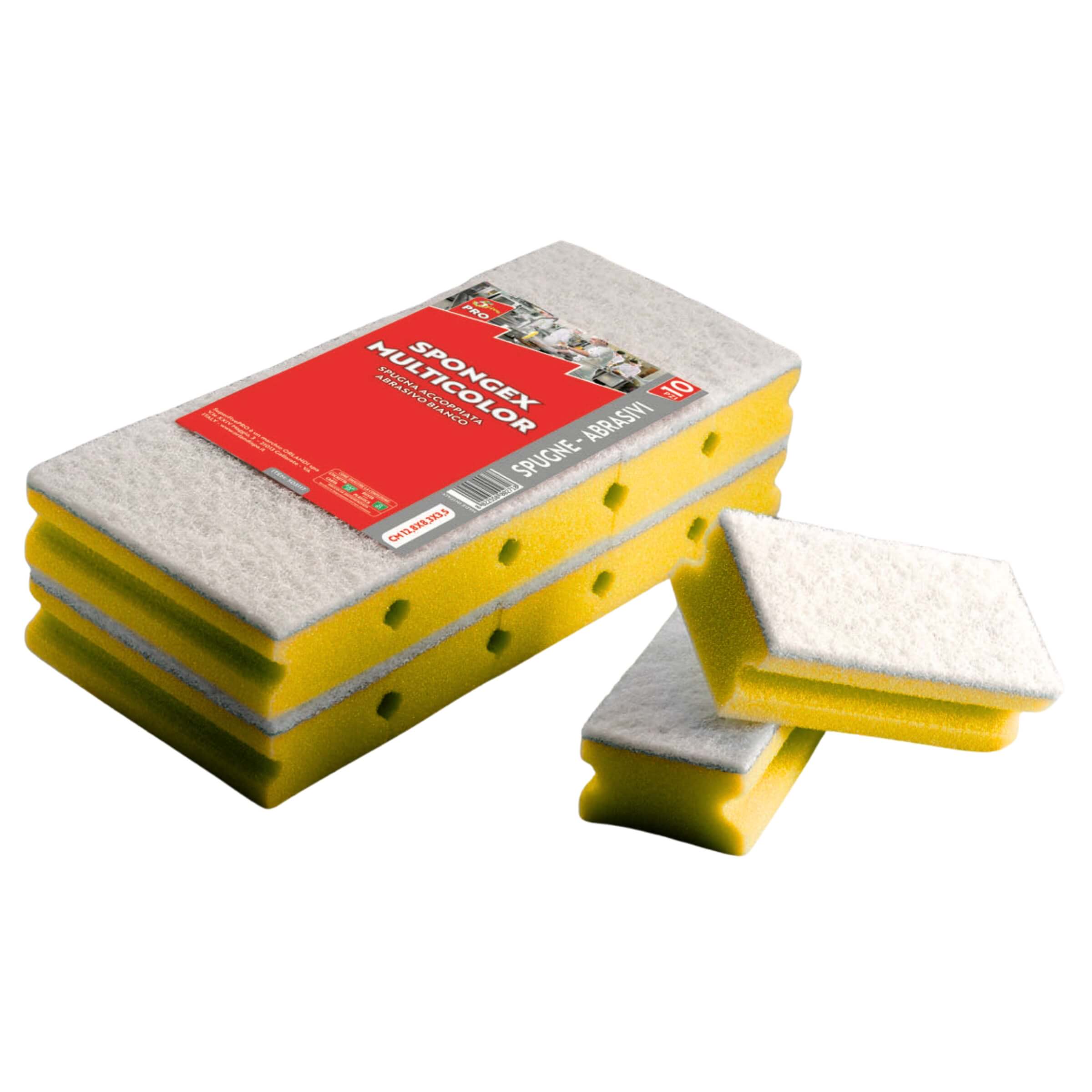 Le spugne abrasive Spongex con fibra bianca sono studiate per garantire una pulizia efficace e sicura in ogni contesto, dalle superfici delicate della cucina a quelle più resistenti utilizzate in ambienti professionali. Il loro design unisce praticità e protezione, rendendole uno strumento indispensabile sia in ambito domestico che per attività nel settore Horeca, alimentare o aziendale. La particolare combinazione tra la spugna gialla e la fibra bianca consente di rimuovere lo sporco senza causare graffi o danni, mantenendo inalterata la qualità dei materiali trattati. La loro ergonomia, pensata con impugnatura scanalata, favorisce una presa sicura e confortevole anche durante utilizzi prolungati, riducendo l’affaticamento della mano e migliorando la precisione del movimento.• Pulizia efficace: La fibra bianca abrasiva è stata studiata per rimuovere sporco, grasso e residui senza compromettere le superfici, ideale per acciaio inox, piani di lavoro e stoviglie.• Sicurezza certificata: La codifica a colori HACCP permette di destinare ogni spugna a un’area specifica, riducendo il rischio di contaminazione incrociata e garantendo la massima igiene negli ambienti professionali.• Design ergonomico: L’impugnatura scanalata protegge le dita e assicura che la spugna aderisca perfettamente alla superficie, aumentando il comfort durante l’uso quotidiano.• Dimensioni ottimali: Ogni spugna misura 14 x 7 x 4,2 cm, un formato bilanciato che permette di raggiungere anche angoli difficili senza rinunciare a una superficie ampia per le pulizie più estese.• Confezione pratica: Il set include 10 spugne abrasive, una quantità ideale per garantire un ricambio costante e duraturo, sia in uso domestico che in contesti professionali ad alta frequenza di pulizia.• Resistenza e durata: I materiali utilizzati conferiscono alla spugna una lunga durata, mantenendo le sue proprietà abrasive e di assorbimento anche dopo numerosi utilizzi e lavaggi.Queste spugne rappresentano un alleato concreto per chi cerca affidabilità, sicurezza e praticità in un unico prodotto. La loro versatilità permette di affrontare le operazioni di pulizia con maggiore efficacia e rapidità, trasformando un’attività quotidiana in un gesto semplice, ordinato e sicuro. Perfette sia per chi desidera mantenere la propria casa in ordine, sia per operatori che necessitano di soluzioni professionali, le Spongex con fibra bianca sono la scelta che unisce cura dei dettagli e prestazioni elevate.