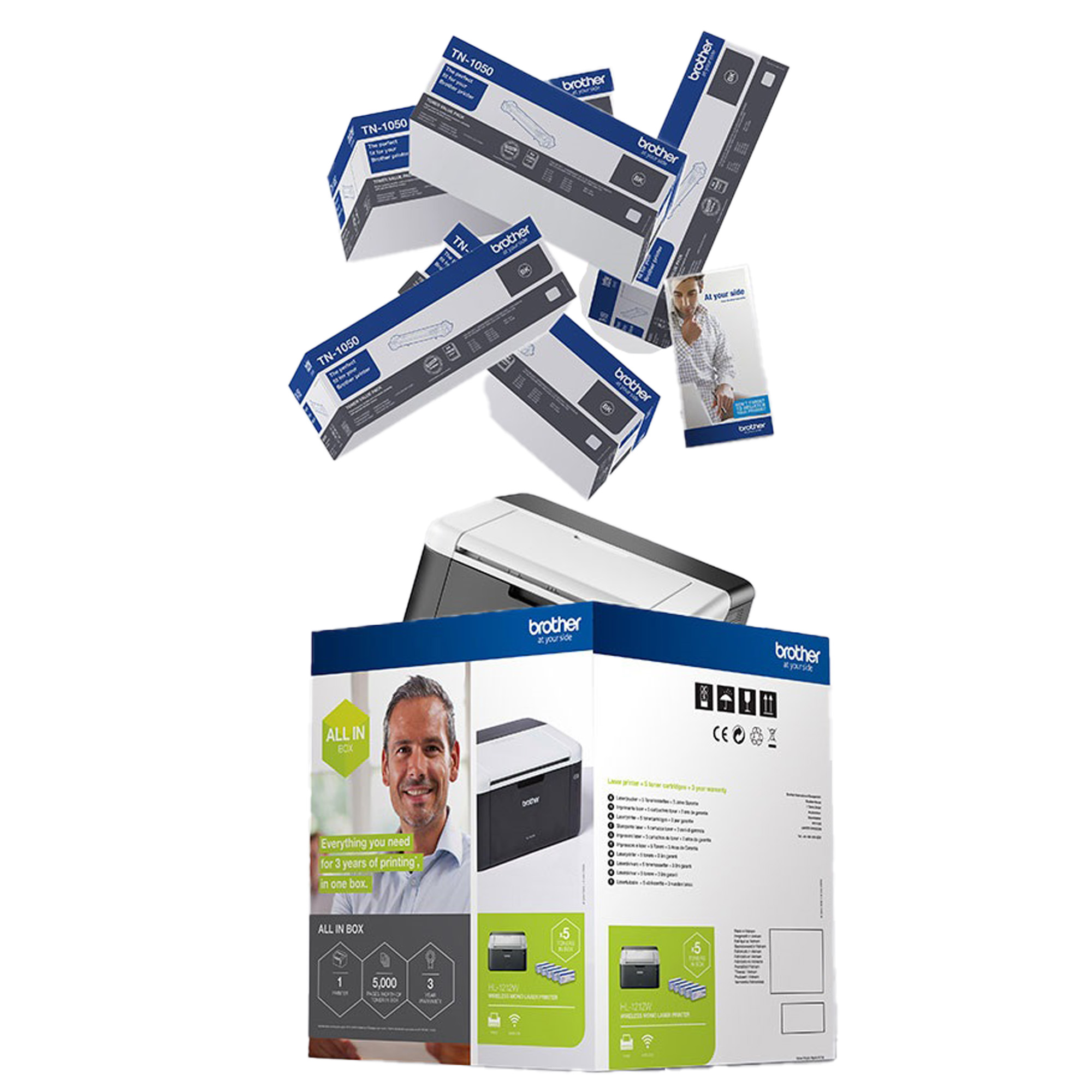 Stampante laser monocromatica compatta con WiFi stampa da app e connettivitA' wireless. Design super compatto Con l'All In Box hai 3 anni di scorta di toner e 3 anni di garanzia. Stampa semplice, affidabile e di qualitA' con toner e garanzia inclusi per 3 anni. 5 cartucce toner trasparenti incluse nella confezione. 3 anni di garanzia estesa inclusa VelocitA' di stampa: fino a 20 ppm ConnettivitA' semplice via Wifi e USB 2.0