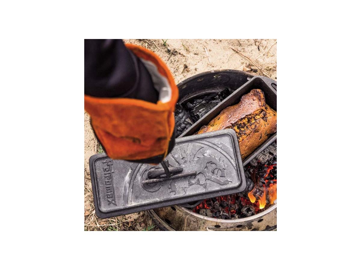 Realizzata in ghisa, la teglia per il pane ha un'eccellente conduzione e conservazione del calore. Non importa se la usate sul fuoco aperto o se spargete i bricchetti sul coperchio: il calore a tutto tondo che ne risulta è convincente nel forno di casa e nella cucina all'aperto. Grazie alla cosiddetta finitura stagionata, la teglia è pronta per l'uso immediato.