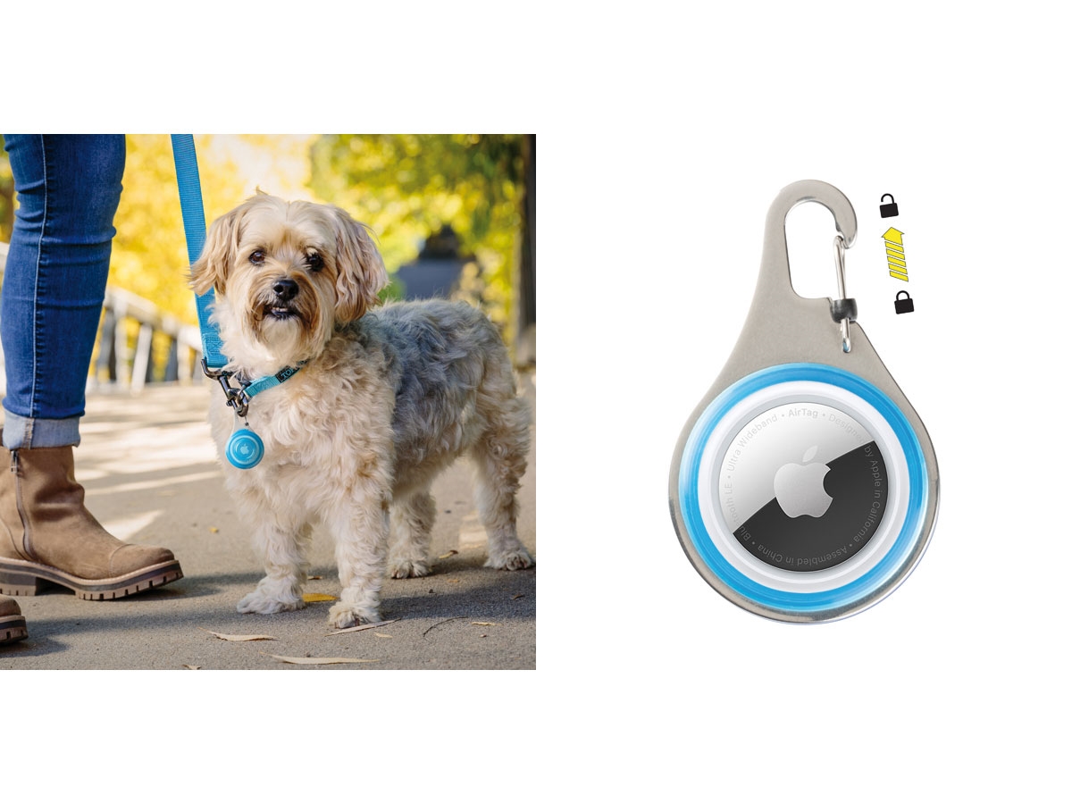 Il WearAbout Pet Tracker Holder è un supporto protettivo per l'Apple AirTag che si aggancia al collare o all'imbracatura tramite il meccanismo brevettato SlideLock in acciaio. L'alloggiamento ed il coperchio sono in gomma termoplastica leggera e si bloccano insieme con uno scatto. Si apre facilmente con la linguetta lungo il bordo.