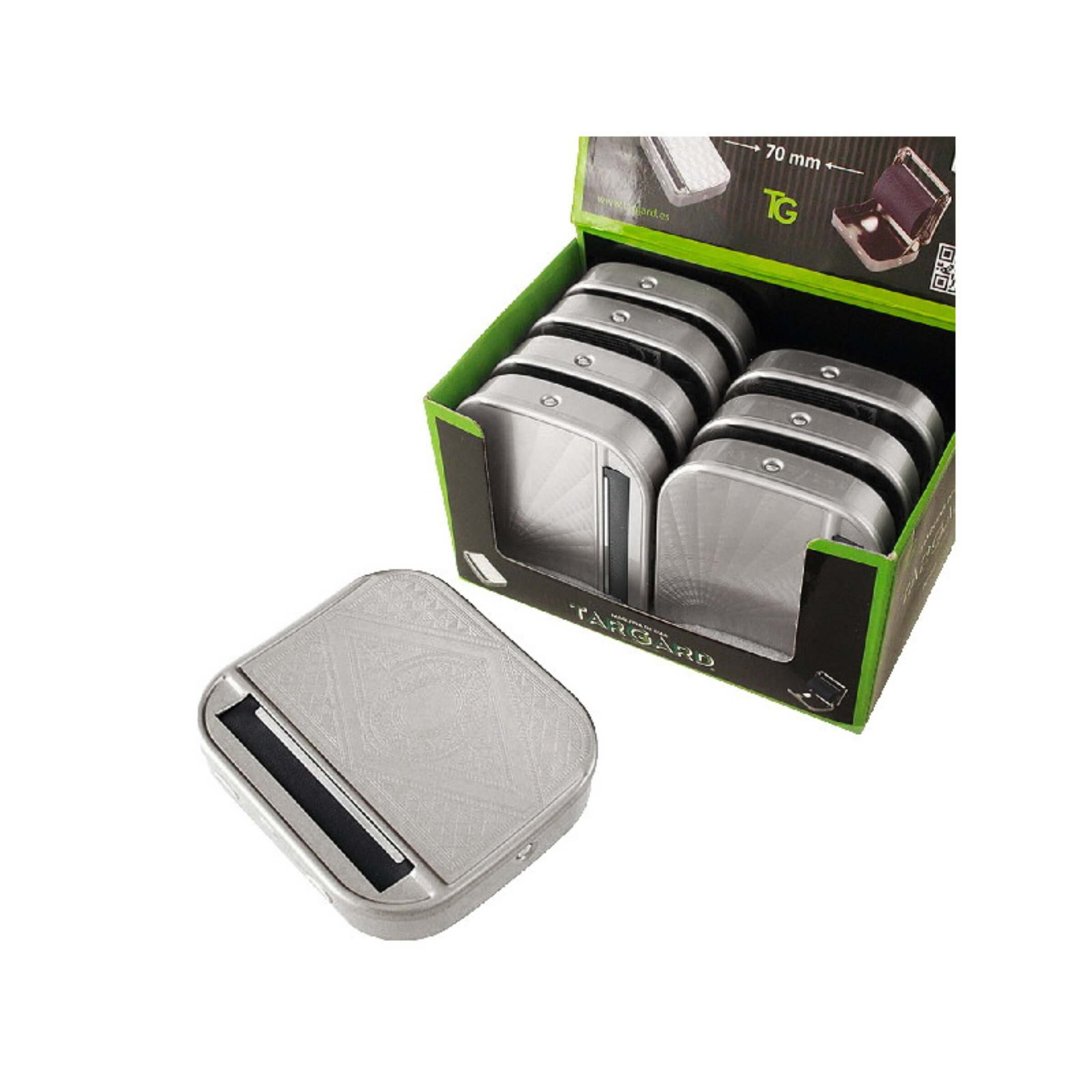 La TabaRolling Targard 70 mm è un'avvolgitore per sigarette in metallo che incorpora anche un pratico porta tabacco, rendendolo uno strumento multifunzionale per i fumatori. Questo dispositivo è specificamente progettato per facilitare l'arrotolamento di sigarette nel formato di 70 mm, offrendo non solo funzionalità ma anche un tocco di stile grazie ai 4 diversi soggetti di disegno disponibili.