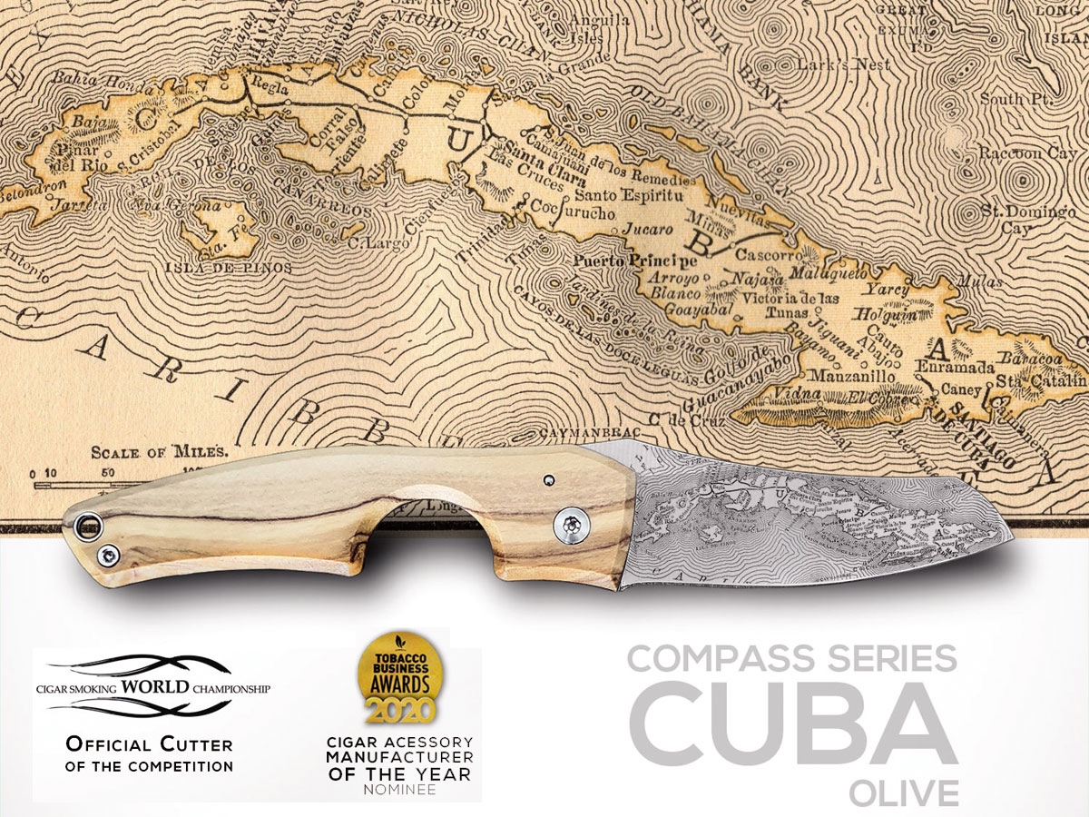 La serie COMPASS-CUBA presenta una fine incisione sul lato anteriore della lama di un\'antica mappa dell\'isola \"perla delle Antille\", rendendo questo LE PETIT un tagliasigari davvero unico.