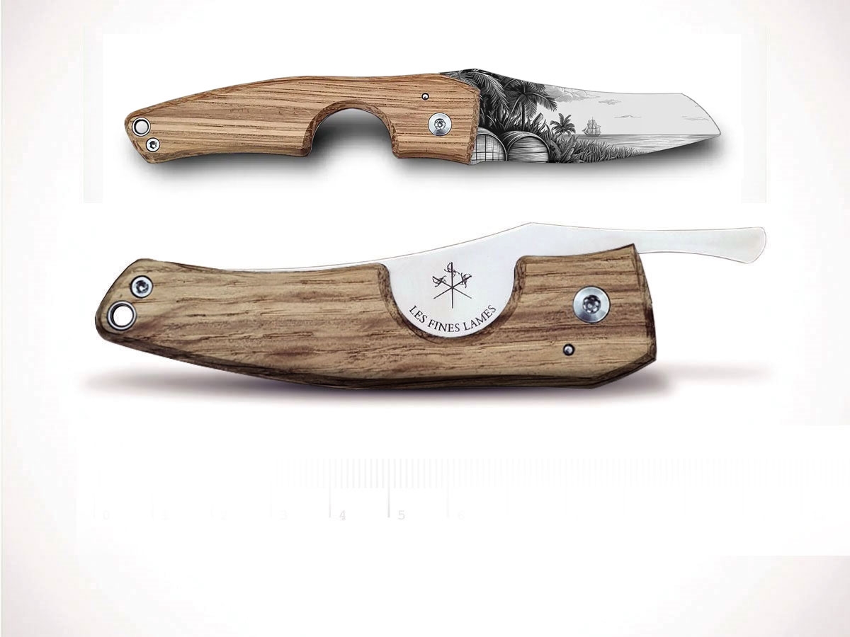 LE PETIT "BARREL RUM" di LES FINES LAMES è un coltellino pieghevole tascabile multifunzionale, che può essere usato anche come un pratico tagliasigari che permette di ottenere tagli pulitissimi. Si apre facilmente con una mano grazie alla Lens, una leva in metallo situata nell'estensione della lama, caratteristica tipica dei coltelli pieghevoli piemontesi. La sua apertura di 23 mm può tagliare a metà un sigaro da 58 RG e la testa di sigari fino a 70 RG.