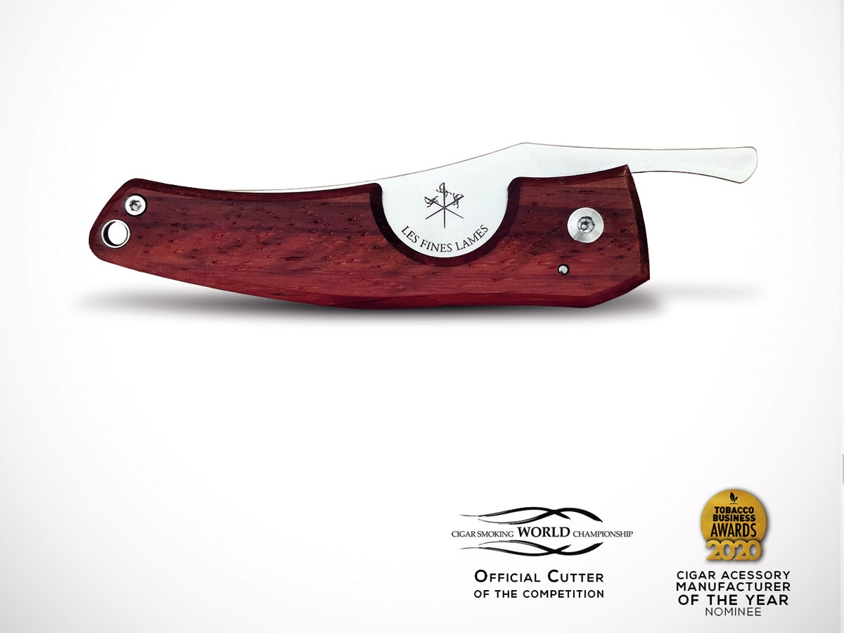 LE PETIT \"PADOUK\" di LES FINES LAMES è un coltellino pieghevole tascabile multifunzionale, che può essere usato anche come un pratico tagliasigari che permette di ottenere tagli pulitissimi. Si apre facilmente con una mano grazie alla Lens, una leva in metallo situata nell\'estensione della lama, caratteristica tipica dei coltelli pieghevoli piemontesi. La sua apertura di 23 mm può tagliare a metà un sigaro da 58 RG e la testa di sigari fino a 70 RG.