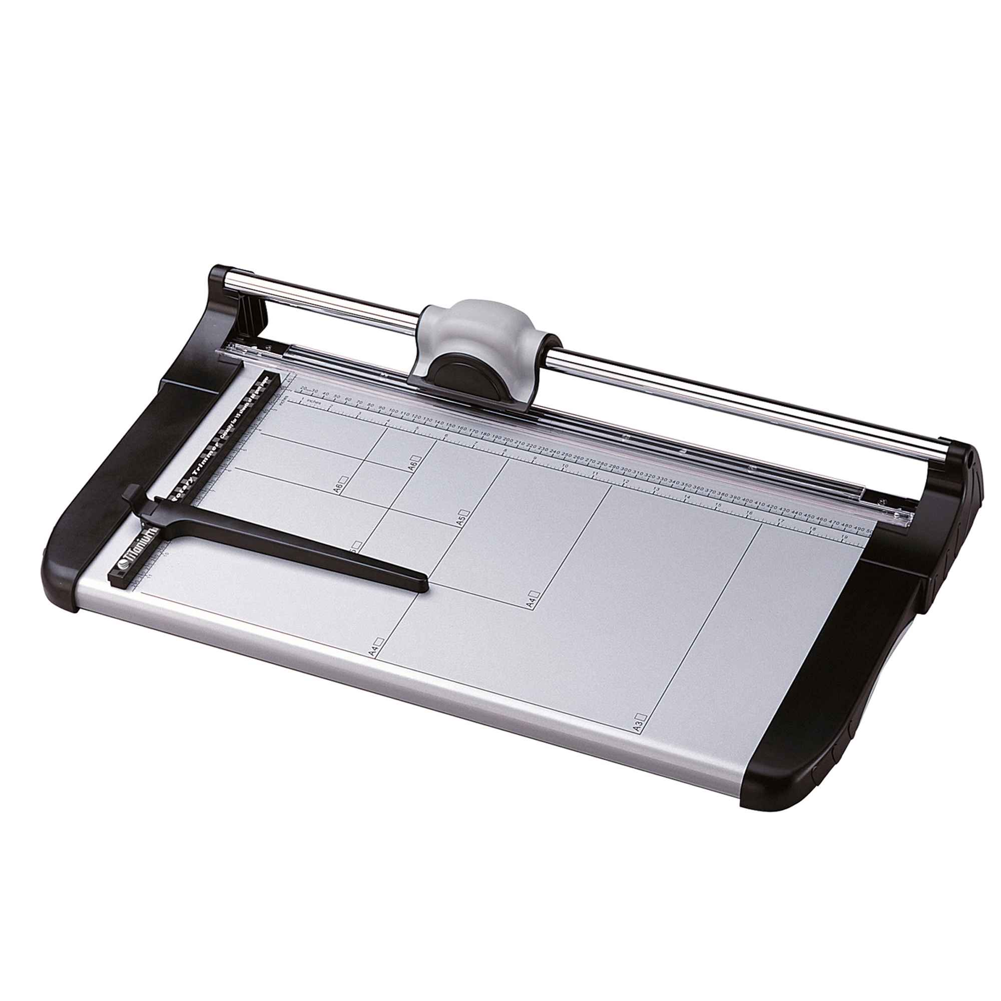 TAGLIERINA CON BASE IN METALLO, MILLIMETRATA IN SERIGRAFIA. GRUPPO LAMA INTERCAMBIABILE DISPONIBILE COME RICAMBIO. TIPOLOGIA DI TAGLIERINA: LAMA ROTANTE LUCE DI TAGLIO: FINO A 480MM SPESSORE DI TAGLIO: 1,5MM MAX NR. DI FOGLI TAGLIABILI: 15FG SISTEMA DI BLOCCAGGIO FOGLI: SI - AUTOMATICO DIMENSIONI PIANO: 315X656MM SCALA DI MISURA: SI - A6-A3 DIMENSIONI: 37X65,6X10CM PESO: 3,74KG