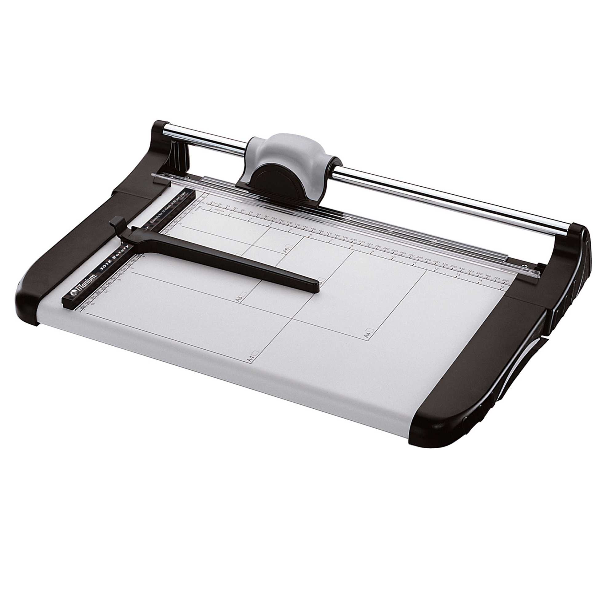 TAGLIERINA CON BASE IN METALLO, MILLIMETRATA IN SERIGRAFIA. GRUPPO LAMA INTERCAMBIABILE DISPONIBILE COME RICAMBIO. TIPOLOGIA DI TAGLIERINA: LAMA ROTANTE LUCE DI TAGLIO: FINO A 360MM SPESSORE DI TAGLIO: 1,5MM MAX NR. DI FOGLI TAGLIABILI: 15FG SISTEMA DI BLOCCAGGIO FOGLI: SI - AUTOMATICO DIMENSIONI PIANO: 315X546MM SCALA DI MISURA: SI - A6-A4 GUIDA FOGLI: SI DIMENSIONI: 370X546X100MM PESO: 3,18KG
