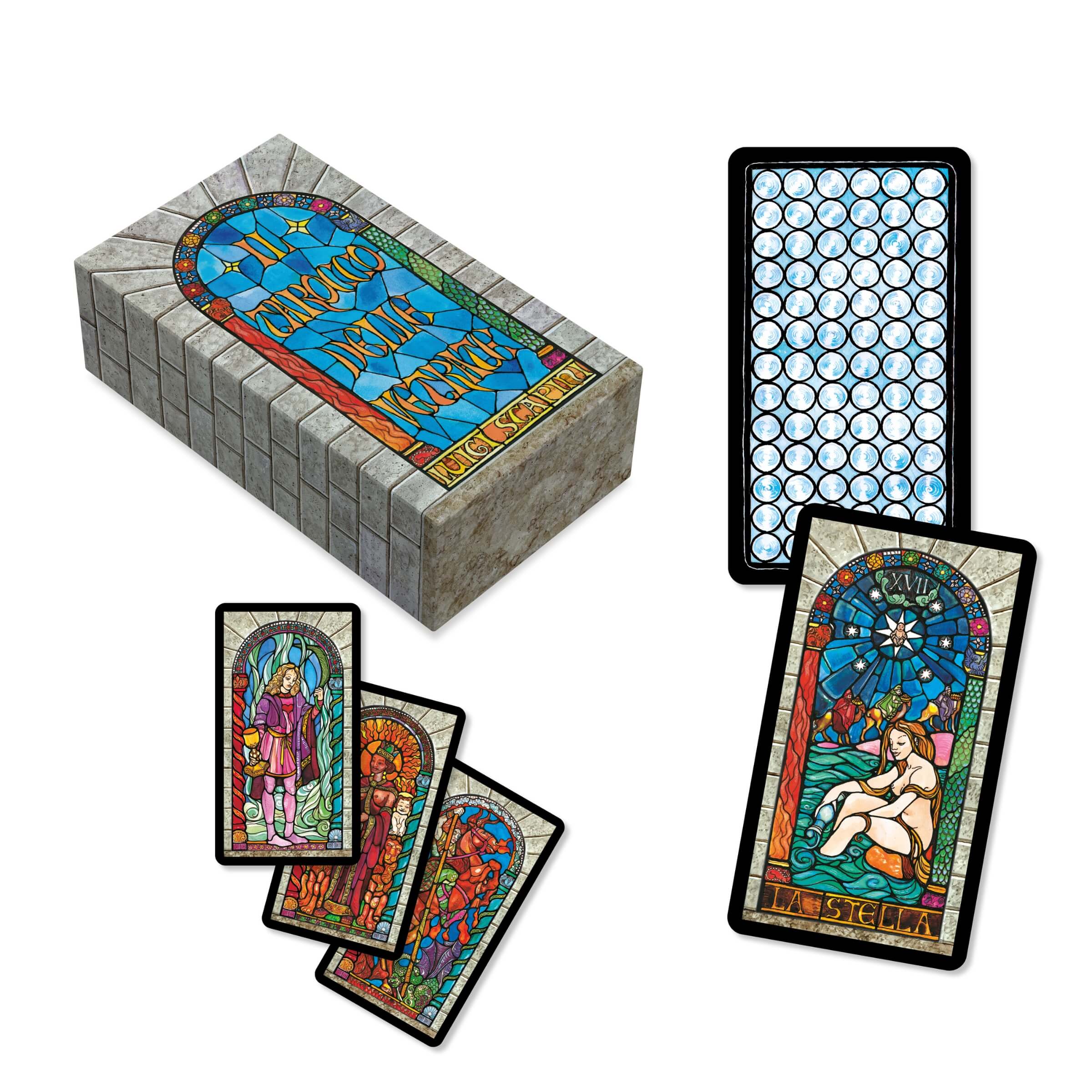 Il Tarocco delle Vetrate nasce da un immaginario visivo fortemente evocativo, in cui ogni carta diventa una piccola opera d’arte capace di catturare la luce e trasformarla in simboli e narrazioni. Le illustrazioni di Luigi Scapini richiamano l’eleganza delle vetrate istoriate, con colori intensi, contorni netti e una costruzione grafica che rimanda alle antiche cattedrali, dove ogni scena sacra racconta un percorso interiore. Questo mazzo da 78 carte, completo di 22 Arcani maggiori e 56 Arcani minori, invita a un’esperienza visiva e simbolica profonda, adatta a chi desidera avvicinarsi al mondo dei Tarocchi attraverso un linguaggio artistico ricco di dettagli e valori simbolici. La presenza del libretto in italiano permette di esplorare significati, interpretazioni e riferimenti stilistici, offrendo una guida chiara per comprendere meglio ogni immagine e il suo ruolo nei percorsi di consultazione o meditazione.• Illustrazioni a vetrata: Ogni carta presenta un disegno ispirato alle vetrate artistiche, con un uso armonioso dei colori e delle composizioni che rendono la lettura visiva immediata e coinvolgente.• Arcani maggiori ricchi di simboli: Le 22 carte principali sono raffigurate in modo dettagliato, con elementi iconografici che rispondono alla tradizione esoterica e facilitano l’interpretazione intuitiva e meditativa.• Arcani minori strutturati con chiarezza: I semi e le figure degli Arcani minori sono rappresentati con equilibrio e leggibilità, permettendo un uso fluido anche per chi si avvicina ai Tarocchi per la prima volta.• Libretto in italiano: All’interno è presente un libretto che accompagna il mazzo con spiegazioni, riferimenti simbolici e indicazioni utili per chi desidera approfondire i significati di ogni carta.• Formato omogeneo e maneggevole: Ogni carta misura mm 66x119, una dimensione comoda sia per chi le utilizza in lettura sia per chi desidera conservarle come oggetto da collezione o come strumento di studio artistico.Questo Tarocco si presentia come un mazzo che unisce arte, introspezione e tradizione, offrendo un percorso che si sviluppa attraverso luce, colore e simboli. Le immagini creano un’atmosfera contemplativa che incoraggia a soffermarsi sui dettagli e a cercare connessioni interiori, trasformando ogni consultazione in un momento di riflessione personale. L’effetto delle vetrate amplifica la percezione delle emozioni e delle energie rappresentate, rendendo l’esperienza visiva più ricca e suggestiva.