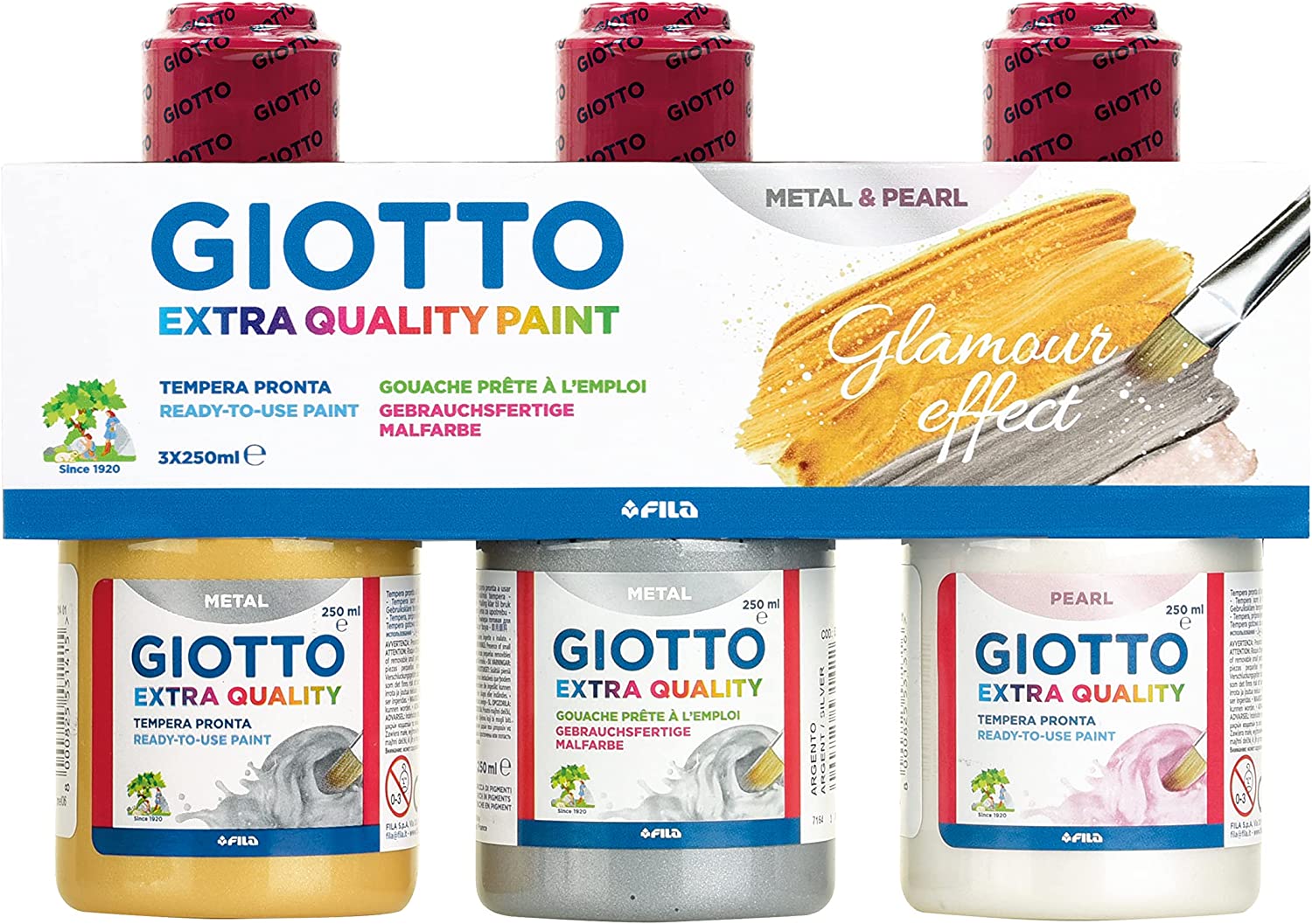 TEMPERA PRONTA SUPER LAVABILE GIOTTO EXTRA QUALITY PAINT METAL & PEARL 250ml - 3 COLORI