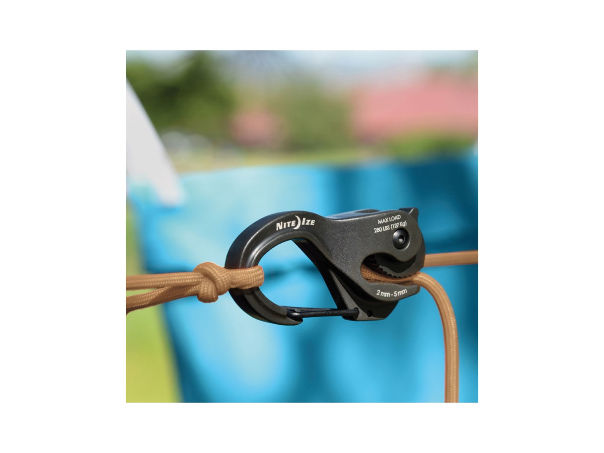 Questo robusto tenditore per fune in alluminio pressofuso combina un robusto moschettone con un meccanismo di bloccaggio a camma, consentendo di fissare, tendere e collegare carichi pesanti utilizzando una fune. Aggancia il moschettone a un punto di ancoraggio fisso, quindi fai scorrere la corda attraverso il meccanismo a camma per una connessione senza nodi e senza preoccupazioni, rilasciando facilmente la corda con un semplice tiro.