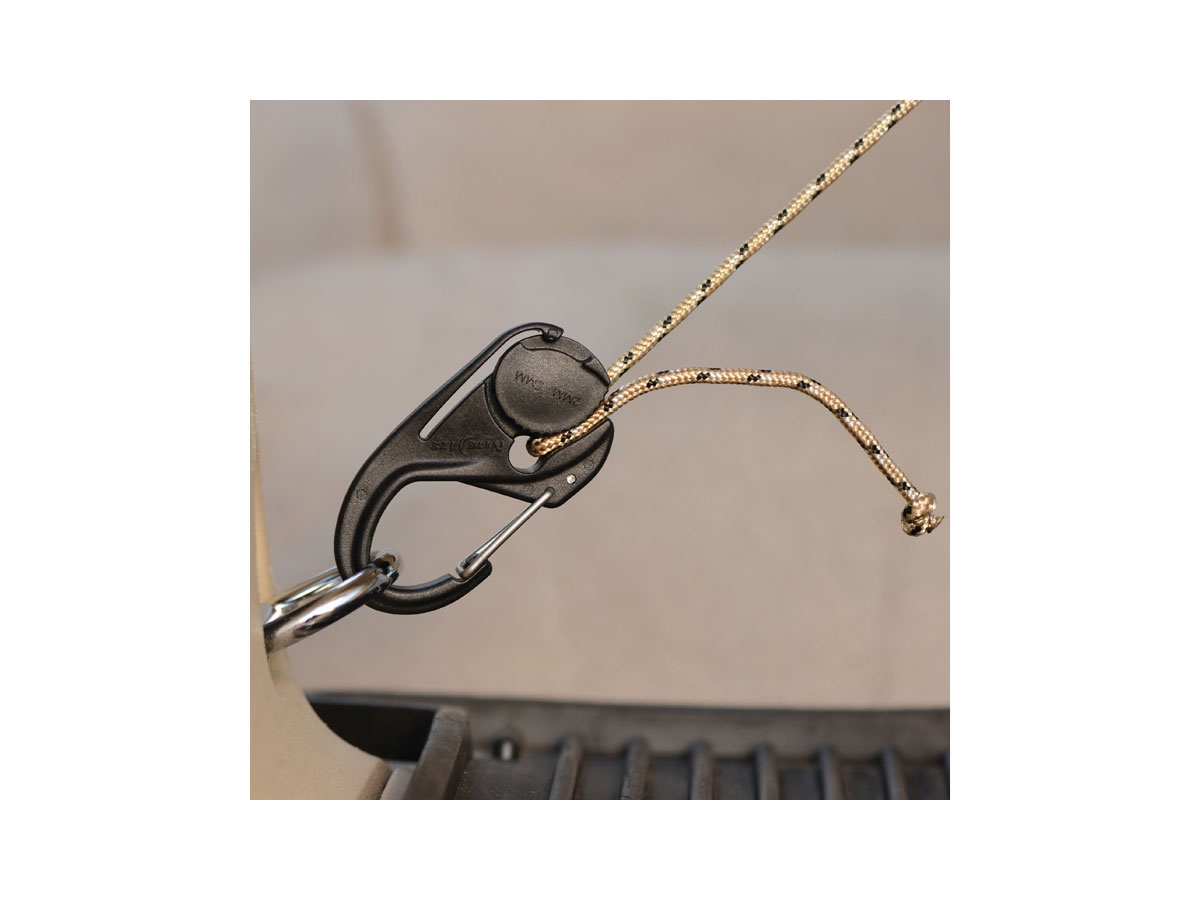 Il tenditore per cavi CamJam combina un robusto moschettone con un meccanismo di bloccaggio a camma per stringere, tendere e fissare carichi leggeri. Il CamJam può essere agganciato a punti di ancoraggio fissi e il meccanismo a camma bloccherà il cavo in posizione con la quantità di tensione desiderata.