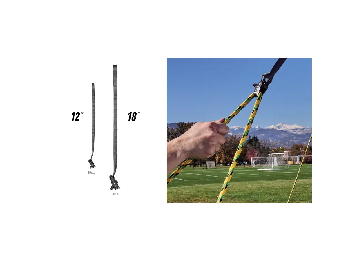 E' disponibile in due misure: la small si adatta a corde da 2 mm a 5 mm di diametro, mentre il large si adatta a corde da 3 mm a 9 mm di diametro. Il piccolo tenditore di corda ha un limite di carico di lavoro di 240 libbre, mentre il grande tenditore di corda ha un limite di carico di lavoro di 400 libbre.