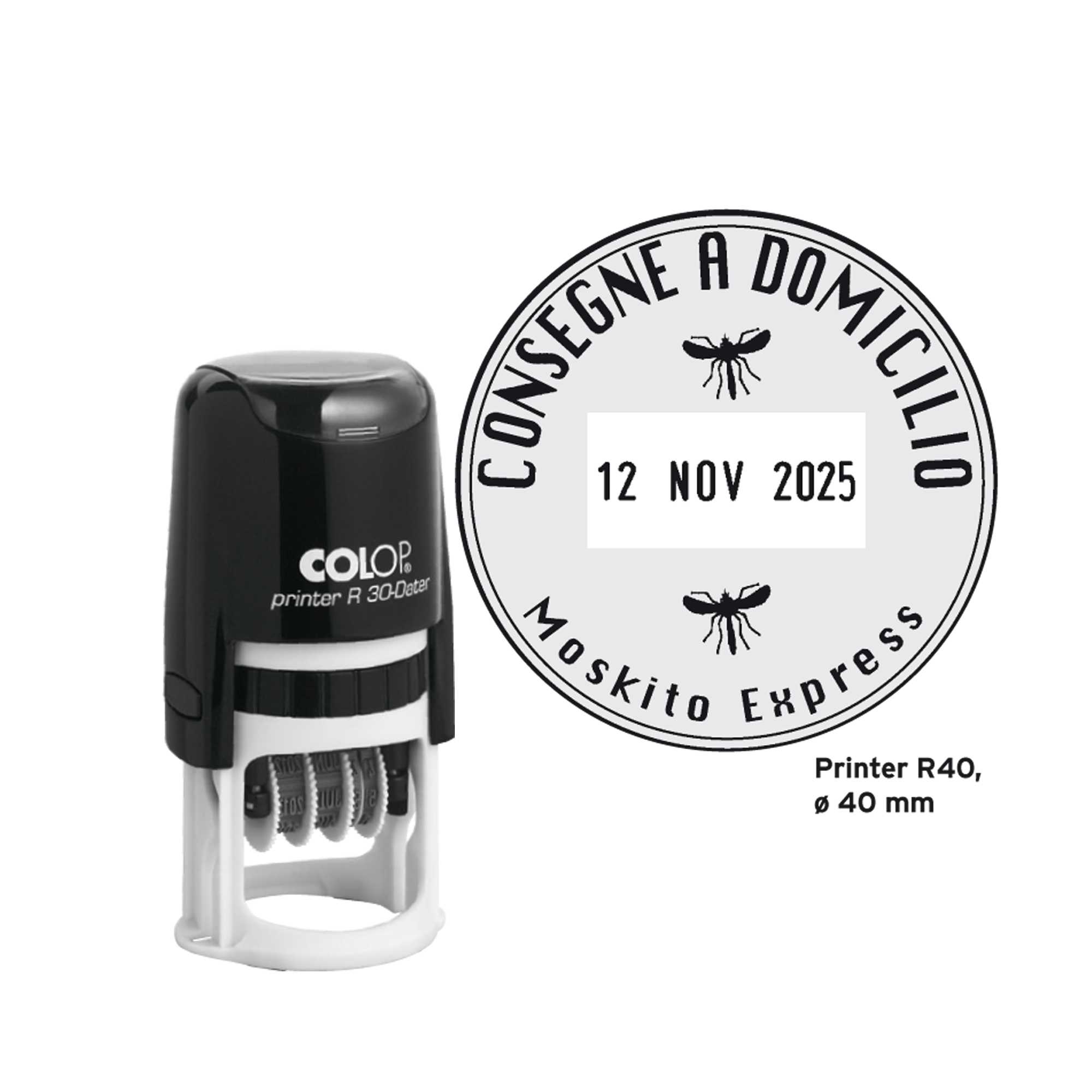 Timbro DATARIO R40 diametro 40mm 6righe autoinchiostrante personalizzabile COLOP