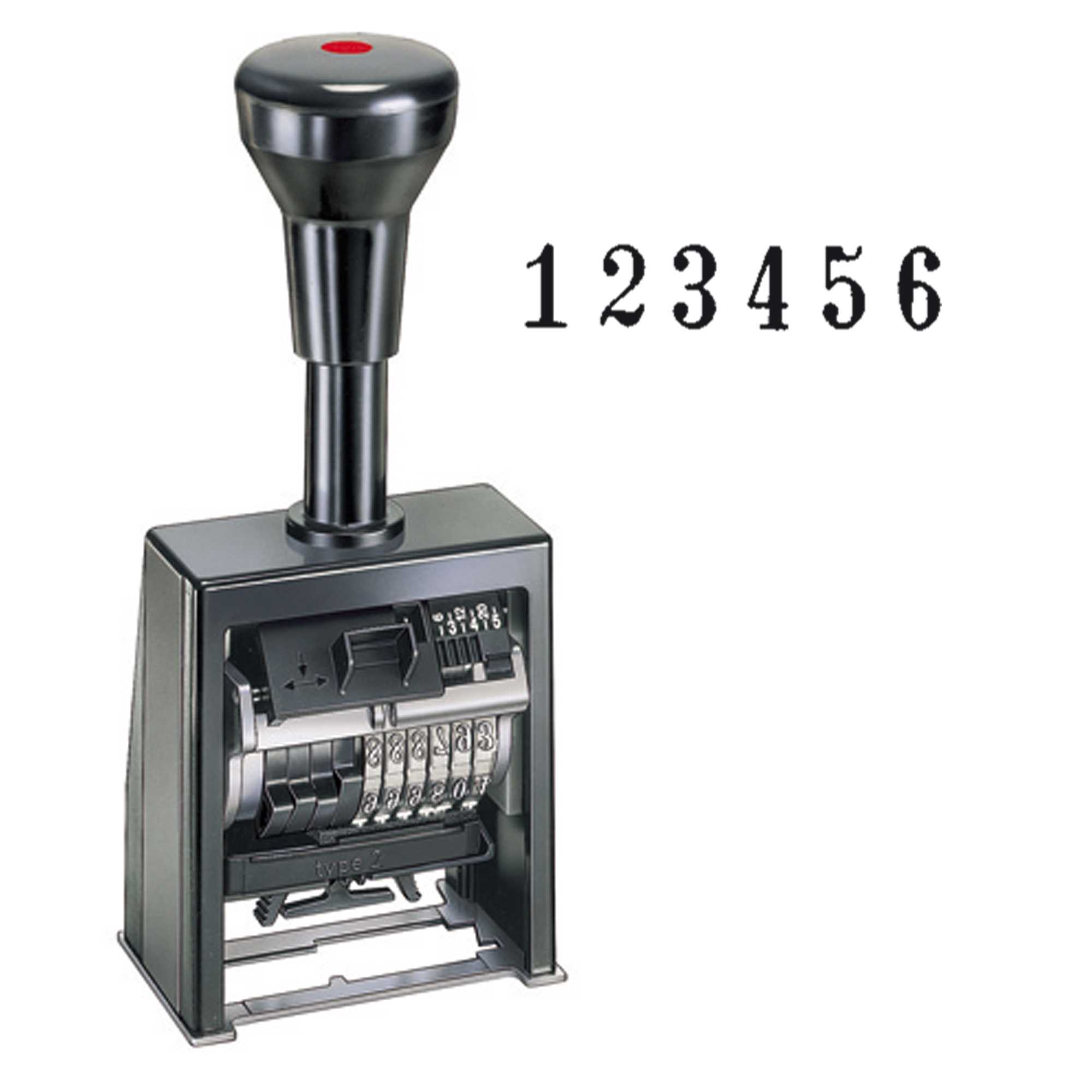 NUMERATORE AUTOMATICO A 6 COLONNE DA 4,5MM CON CARATTERE BLOC BASTONE. MONTATURA ROBUSTA. IMPUGNATURA ERGONOMICA IN ROBUSTO MATERIALE PLASTICO. TAMPONE RICAMBIO TYPE2 (38145)