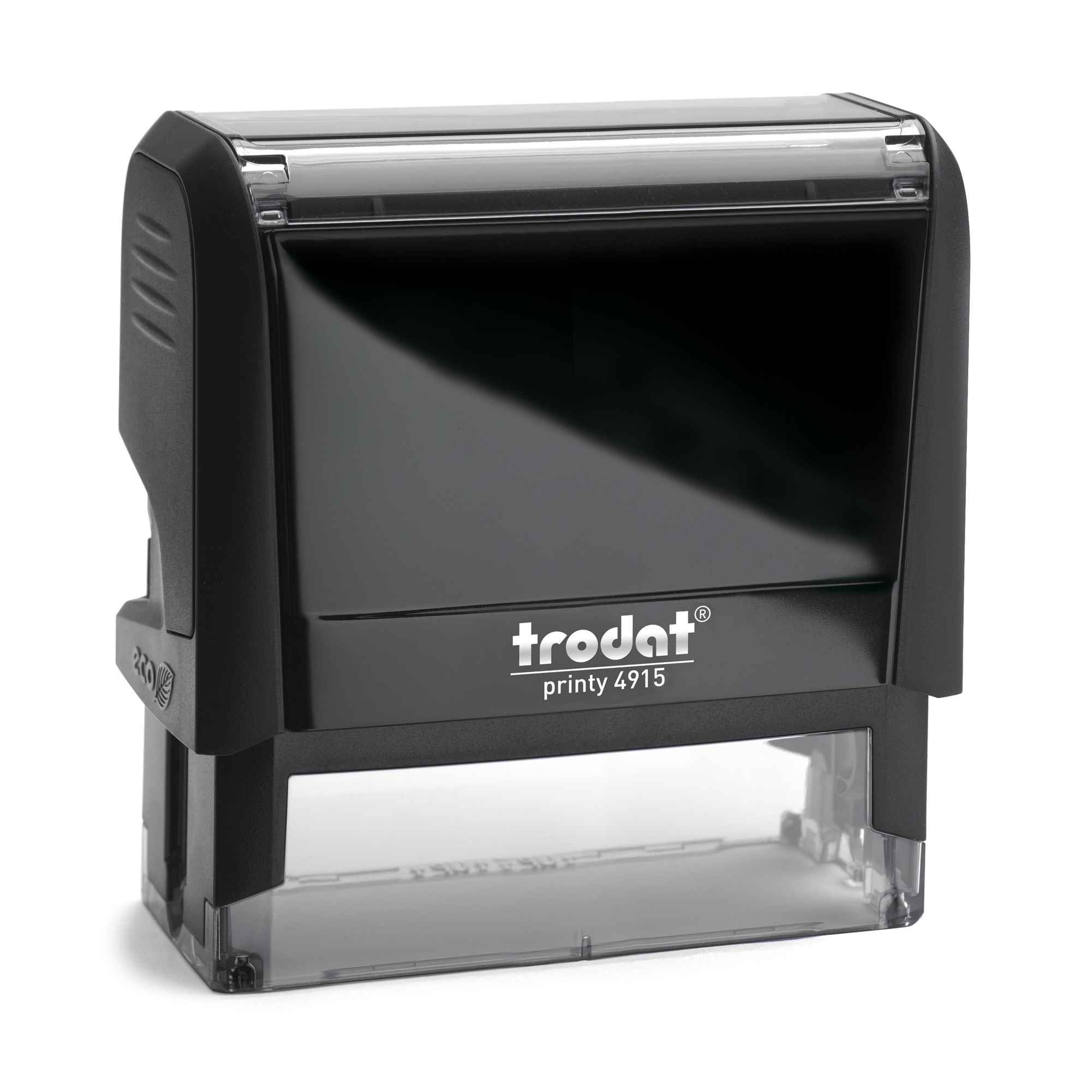 IN PLASTICA RICICLATA AL 65%. PERSONALIZZABILE, AUTOINCHIOSTRANTE. F.TO STAMPA: 70X25MM. TAMPONE DI RICAMBIO: 6/4915