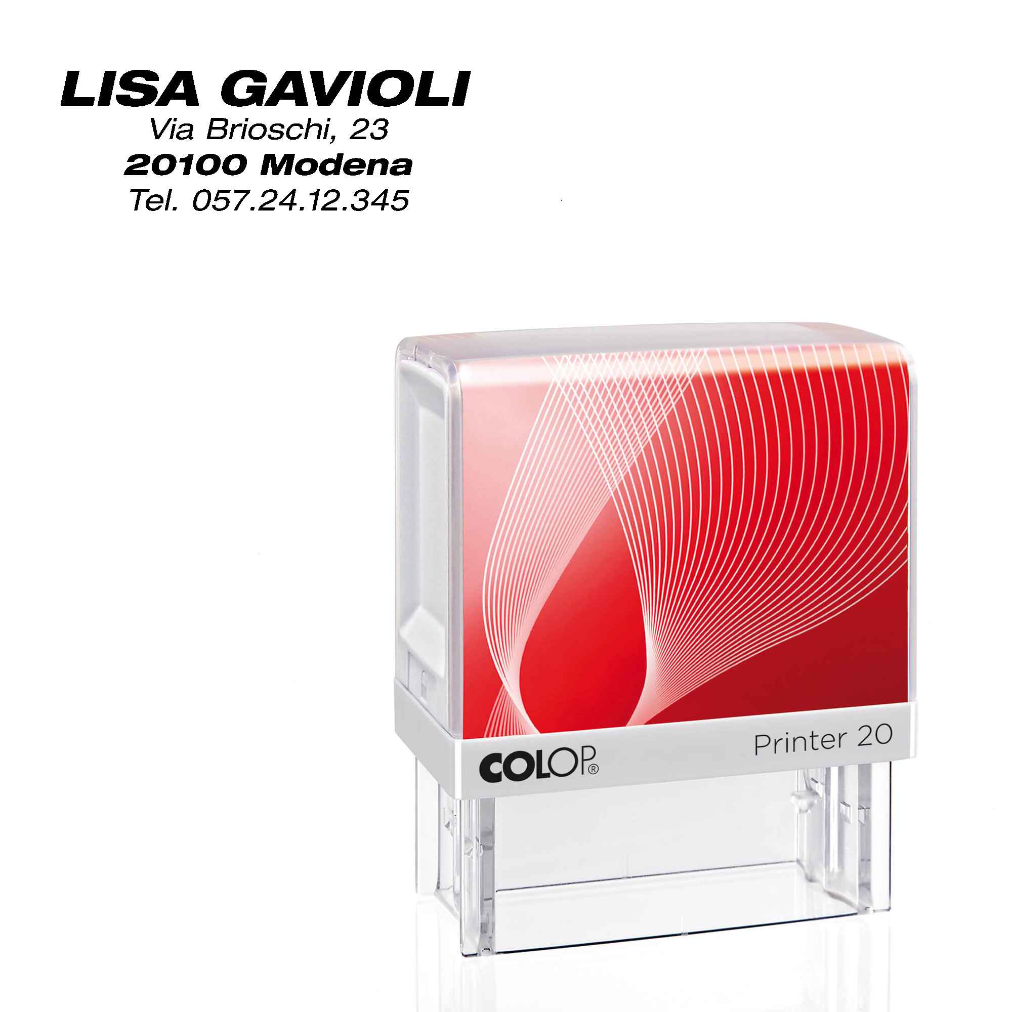 PERSONALIZZABILE, AUTOINCHIOSTRANTE. F.TO STAMPA: 14X38MM. FINESTRA PORTA TESTO EXTRA LARGE. TAMPONE DI RICAMBIO: E/20