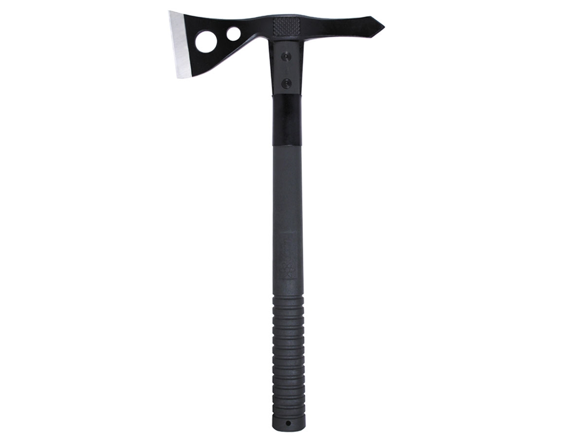 Basato sul Tomahawk del Vietnam, il Tactical Tomahawk è uno strumento versatile per le operazioni di scavo, rimozione degli ostacoli, estrazione e altre applicazioni di utilità. La testa in acciaio inossidabile 420 con rivestimento Hardcased è montata sull'impugnatura in nylon rinforzato con fibra di vetro con bulloni per impieghi gravosi e una ghiera in acciaio per la stabilità. La zigrinatura laterale assicura un posizionamento preciso durante il martellamento. E' dotato di un fodero di nylon.