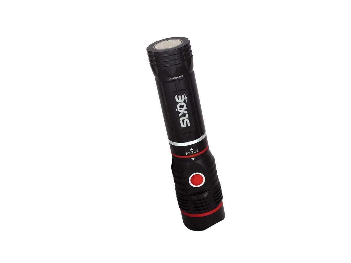 Combina una torcia LED con una lampada da lavoro COB LED, nascosta nel corpo e che appare facendo scorrere il corpo della torcia!